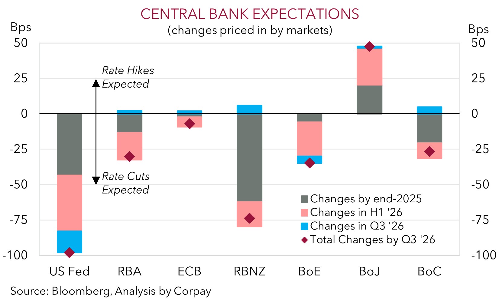As widely expected, especially after last week’s hotter monthly Australian CPI figures, the RBA kept the cash rate at 3.6%. The Board’s decision was unanimous and there was little firm guidance suggesting any degree of urgency to lower interest rates again in the near-term, in our view. From our perspective key comments leant relatively more “hawkish”. The RBA noted that based on the recent data Q3 inflation might be “higher than expected” and that the decline in core inflation has slowed. Added to that, the June quarter national accounts showed “private demand is recovering a little more rapidly” than predicted, while labour market conditions “remain a little tight”. The RBA Board believe it should “remain cautious” with Governor Bullock noting things will be looked at “meeting by meeting” and that it is “difficult to say” if the RBA still has an easing bias. In our view, given improving momentum across the economy, sticky inflation, and resilient jobs market another interest rate cut by the RBA this year appears unlikely. Markets agree with the next RBA rate cut now not fully priced in until May 2026.