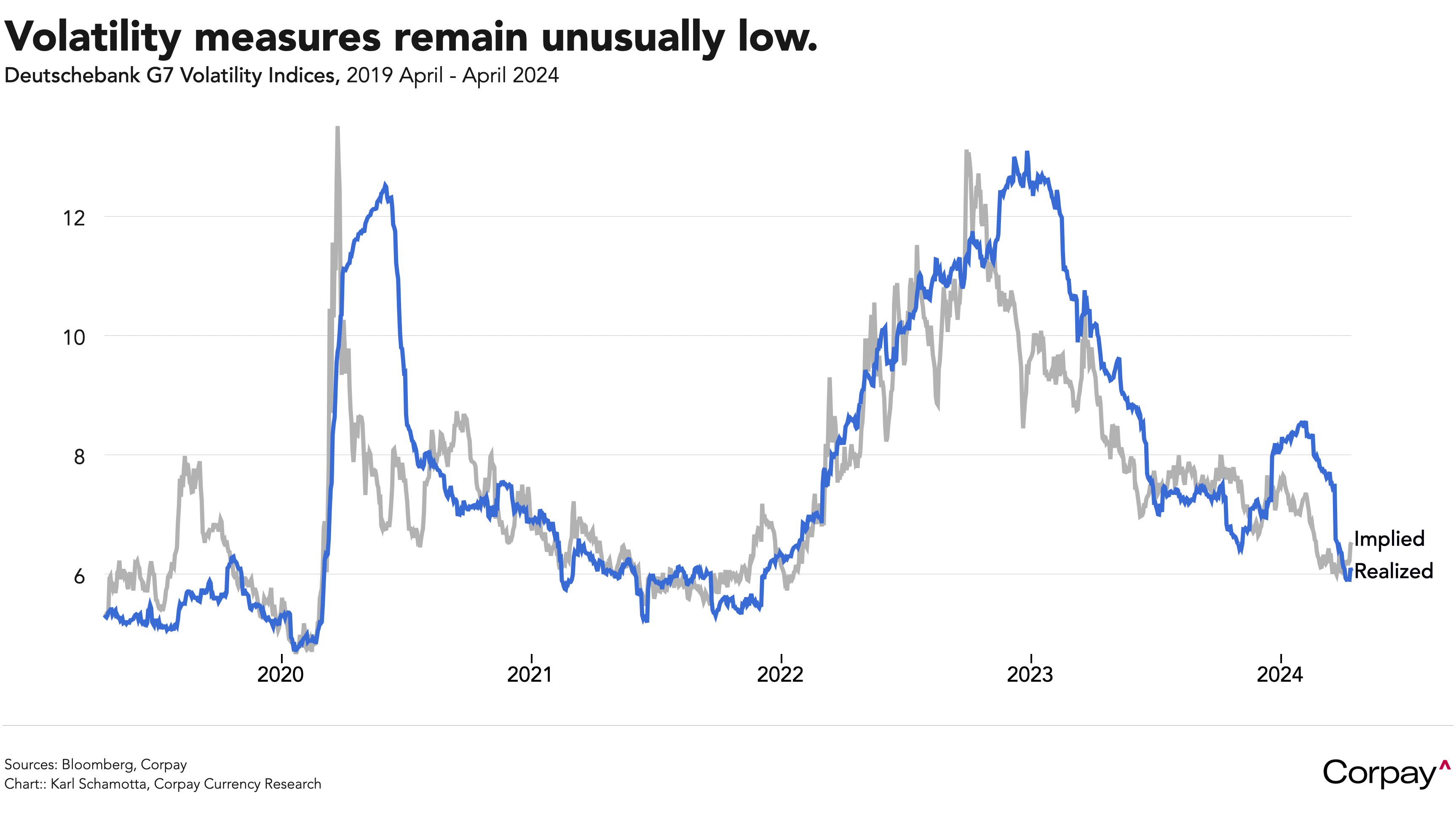 Overall currency market volatility is reverting toward levels that prevailed prior to Wednesday’s inflation shock, suggesting that risk-taking activity – like borrowing yen and buying Mexican peso – is likely to continue.