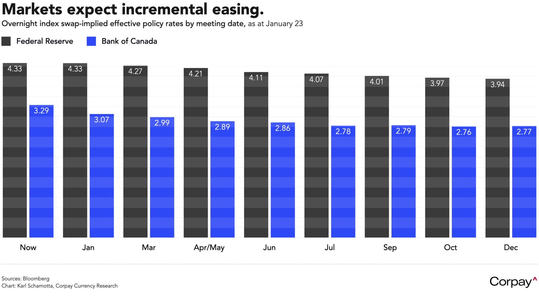 The Bank of Canada is also likely to remain cautious when it meets next week. With economic slack remaining substantial, core inflation measures running well below target, and the threat of a trade war with the United States weighing on business investment and consumer sentiment, policymakers are widely expected to keep nudging the overnight rate toward “neutral”, which is suspected to be somewhere between 2.25 and 3.25 percent. Swap markets are putting 88-percent odds on a rate cut, with one more move priced in before year end – a pace that would slightly widen the country’s policy rate differential relative to the US. This shouldn’t, in and of itself, be market-moving, given that traders have expected such a divergence for many months now.
