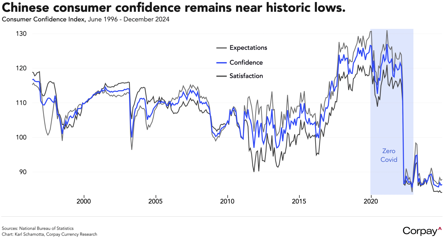 The Chinese yuan is trading nearly unchanged after Donald Trump said a new trade deal with Beijing was “possible,” and said he has a “great” relationship with Xi Jinping. As we’ve previously outlined, trade with the United States has become less critical to China over time, with domestic imbalances growing in importance. With the world’s most important property market still declining in year-over-year terms and authorities demonstrating a continued reluctance to stimulate the household side of the economy, consumer sentiment remains near historic lows.