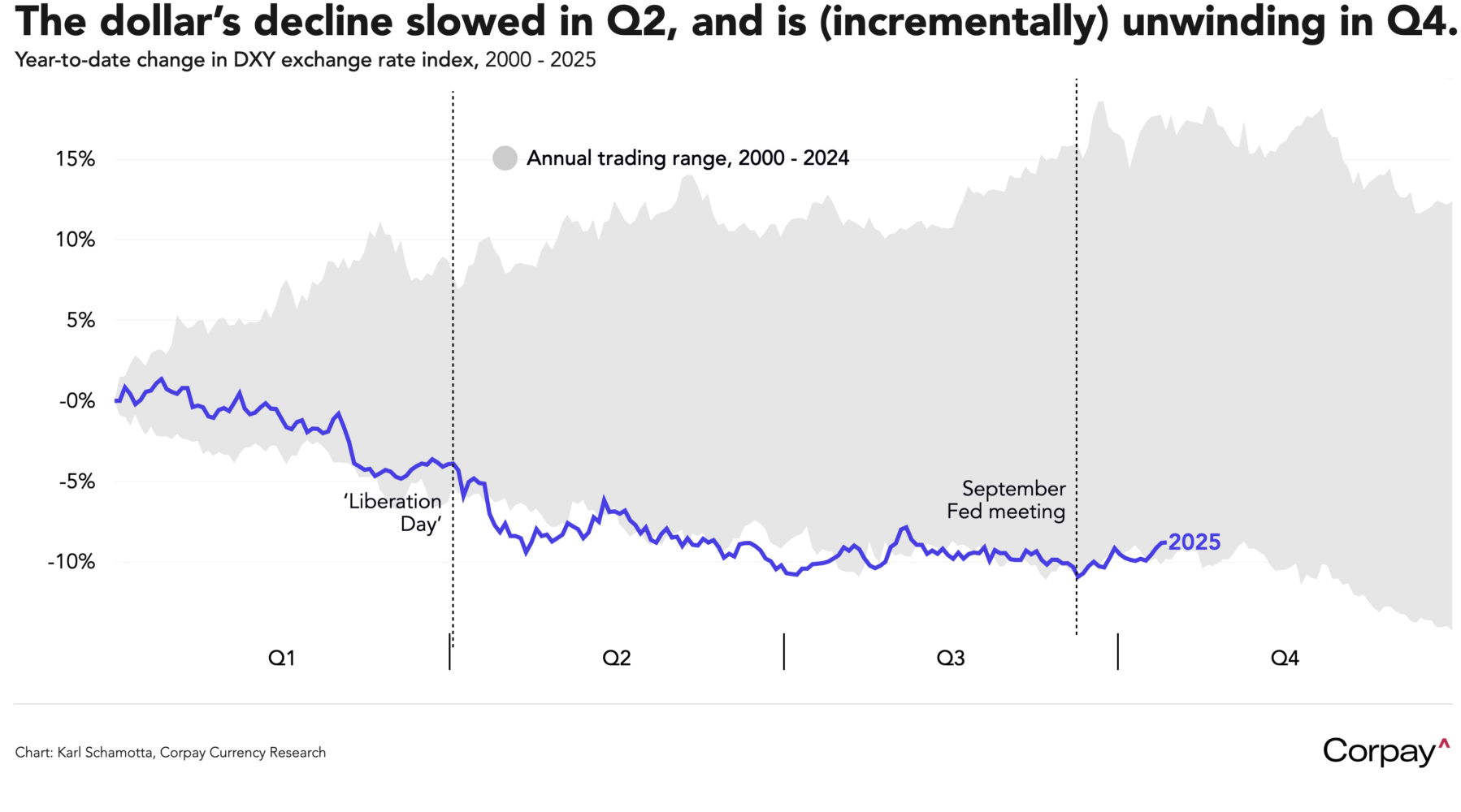 Currencies outside the US are in consolidation mode. The Japanese yen is holding near the 153 threshold as traders turn more sceptical on the Takaichi administration’s capacity for delivering fiscal and monetary stimulus, the euro is treading water in line with an ebbing in French political headlines, and the British pound is inching higher amid a lack of domestic rate catalysts. The Canadian dollar—stuck in a narrow technical trading range for days—is moving sideways ahead of a speech from Bank of Canada Deputy Governor Carolyn Rogers, and the Mexican peso is pushing higher as optimism surrounding trade relations with the US provide buoyancy and carry trade flows deliver a consistent bid.