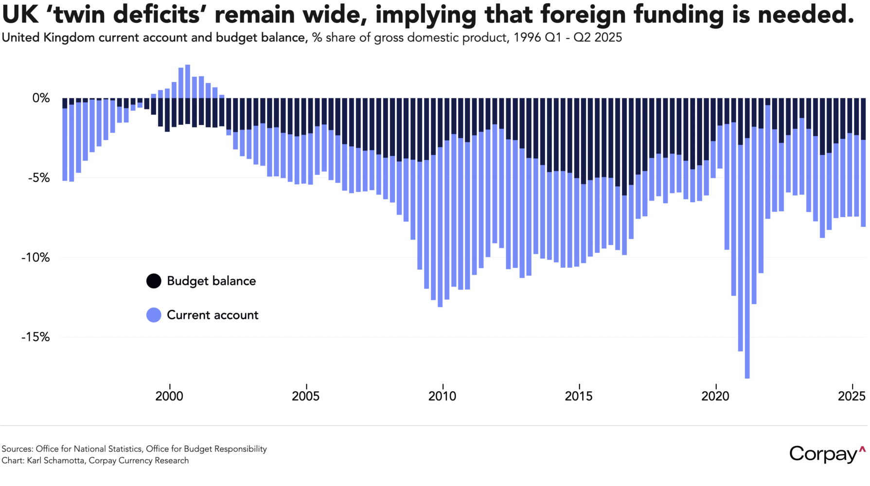 Hedgers should expect continued turbulence in the pound over the coming weeks. Markets typically take time to digest shifts in the UK’s fiscal stance, and forthcoming guidance from the Debt Management Office could add another layer of uncertainty. While growth trends and monetary-policy expectations are likely to dominate near-term currency moves, the underlying reality is unchanged: Britain must attract sustained flows of foreign capital to fund its twin current-account and fiscal deficits. That dependence will leave sterling prone to periodic bouts of volatility for years to come.