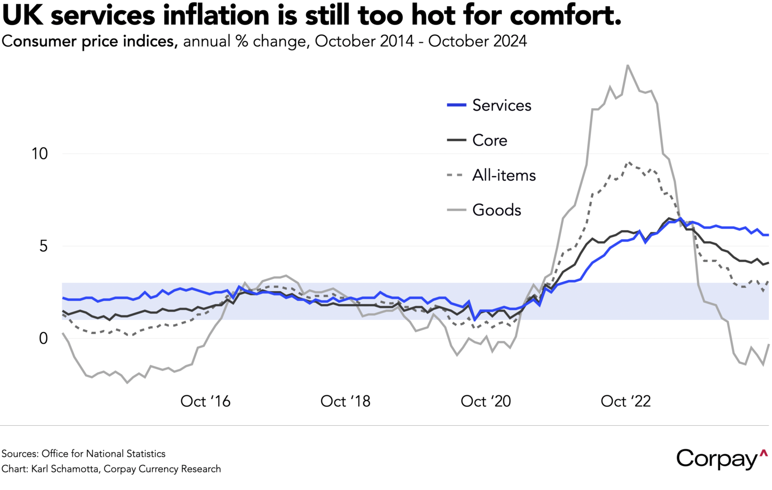 Across the pond, the Bank of England is unlikely to follow suit with its own rate cut on Thursday. Data released a day prior is expected to show headline inflation accelerating in November on a year-over-year basis, rising from October’s 2.3 percent to 2.6 percent, and services cost increases will almost certainly remain far too hot for comfort, holding close to the 5 percent threshold. Officials will likely retain language from the previous statement, which said “a gradual approach to removing monetary policy remains appropriate,” and other communications should be consistent with Governor Bailey’s recent guidance on the trajectory of rate cuts next year – he expects to move just four times, maintaining a pace that would keep rate differentials tilted in the pound’s favour.