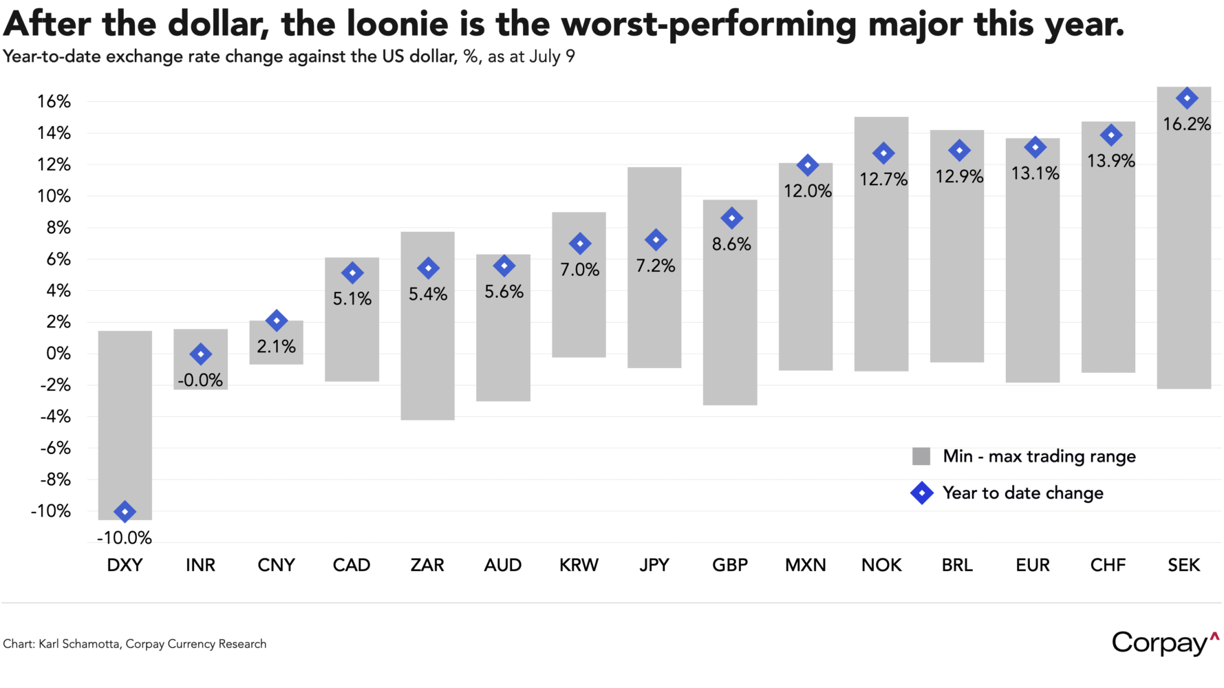 Across the 49th, the Canadian dollar is losing altitude as uncertainty ratchets higher, consolidating its status as the worst-performing major currency against the dollar this year.
