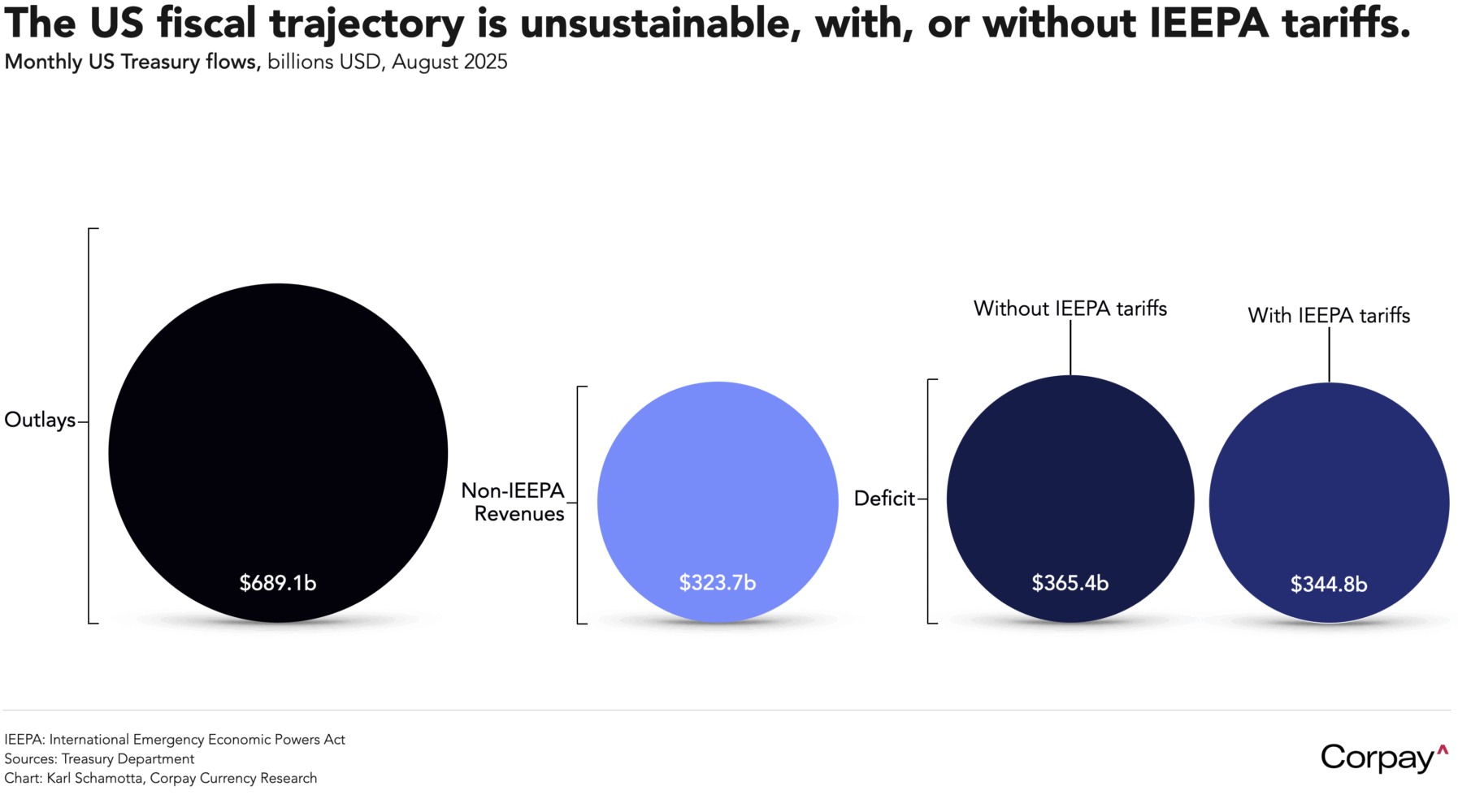 Some have argued that a rollback in the IEEPA tariffs could lead to a substantial rise in interest rates and a decline in the dollar as the US fiscal position worsens. I find this unconvincing. The gap between federal spending and revenues dwarfs tariff proceeds, and will continue to do so under any credible forecast—particularly given the fiscal provisions enacted in the Big Beautiful Bill Act. Investors are not going to abandon US assets in reaction to a reduction in the tariff offset. If anything, the prospect of a more efficient, less distortionary economy could prove supportive for the dollar.