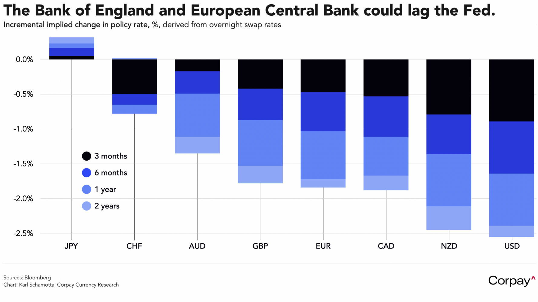 In contrast, both the European Central Bank and Bank of England are seen moving more slowly, cutting from lower starting points and moving toward “terminal” levels at a more gradual pace. The euro and pound have edged higher over the last two months on a narrowing in expected rate differentials, and policymakers on both sides of the Channel seem content to remain in data-dependent mode, taking decisions one at a time and avoiding the sort of auto-pilot easing campaign that could ensue in the United States beyond the early autumn. The pound looks marginally overpriced relative to the euro, but support for both currencies should remain intact in the absence of a dramatic slowing in the US economy – which would undoubtedly have global spillovers – or a major shock in the November presidential election, given its implications for growth, inflation, and trade around the world.