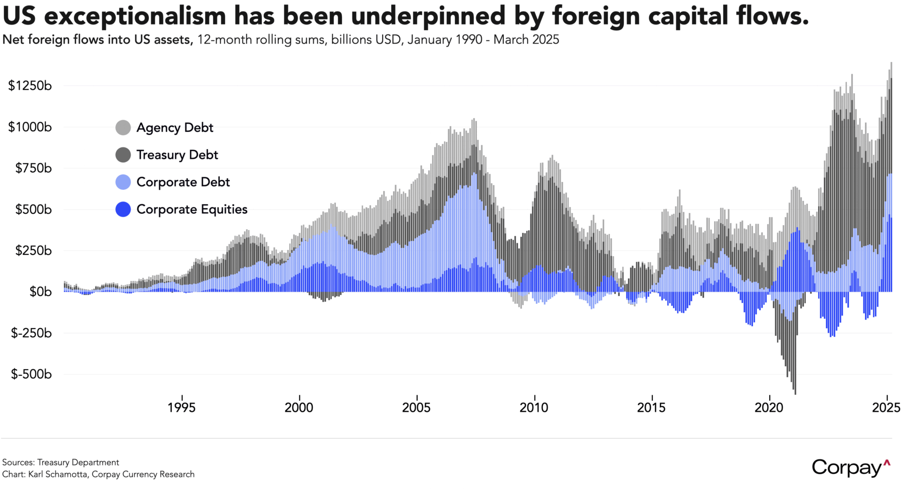 Fiscal concerns are growing more acute. Republican lawmakers are reportedly close to approving a bill that would renew President Trump’s 2017 tax cuts, add a slew of additional tax breaks, raise the debt ceiling by as much as $5 trillion, and add $3.3 trillion to the federal debt over the next decade – or $5.2 trillion if temporary provisions are made permanent. This comes after Moody’s downgraded the US’s triple-A sovereign credit rating on Friday evening, and amid fears of a slow-motion bond-buyer strike. A serious sovereign-debt crisis remains deeply unlikely, but there is no doubt that the “risk discount” embedded in US assets has increased as a function of higher policy and economic uncertainty, and that the flow of foreign capital into American financial markets could slow over time, threatening their long-run outperformance.