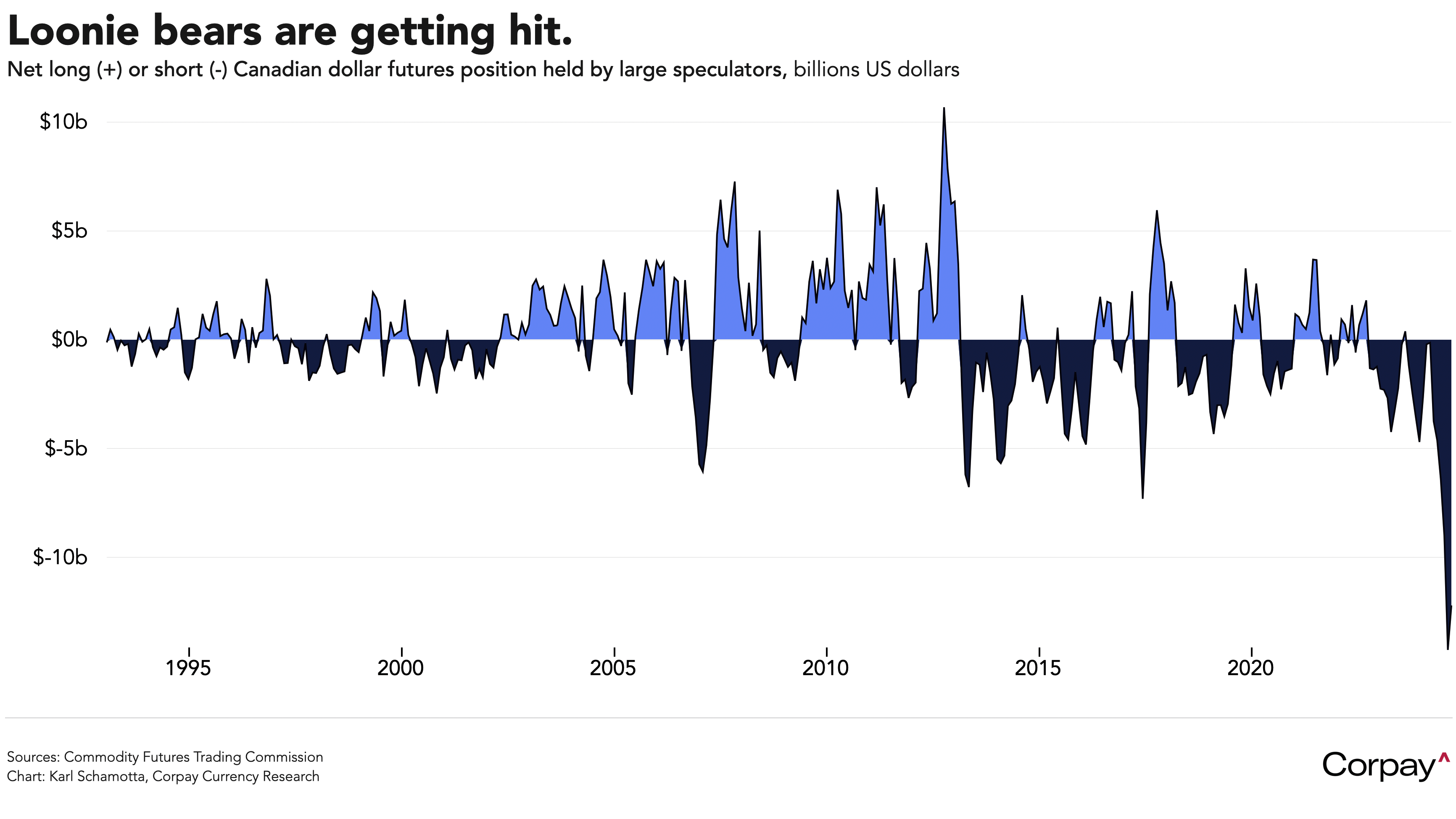 After speculators spent much of the last two months building a record short position against it**, the Canadian dollar is outperforming. Rate differentials have narrowed in the currency’s favour as the Fed has moved closer to beginning an aggressive easing campaign. Global interest rates have come down, reducing stress on the country’s highly-leveraged households and businesses. And the crowdedness of the trade is likely exacerbating upside moves, with many leveraged players forced to buy the currency back as they are squeezed out of short bets.