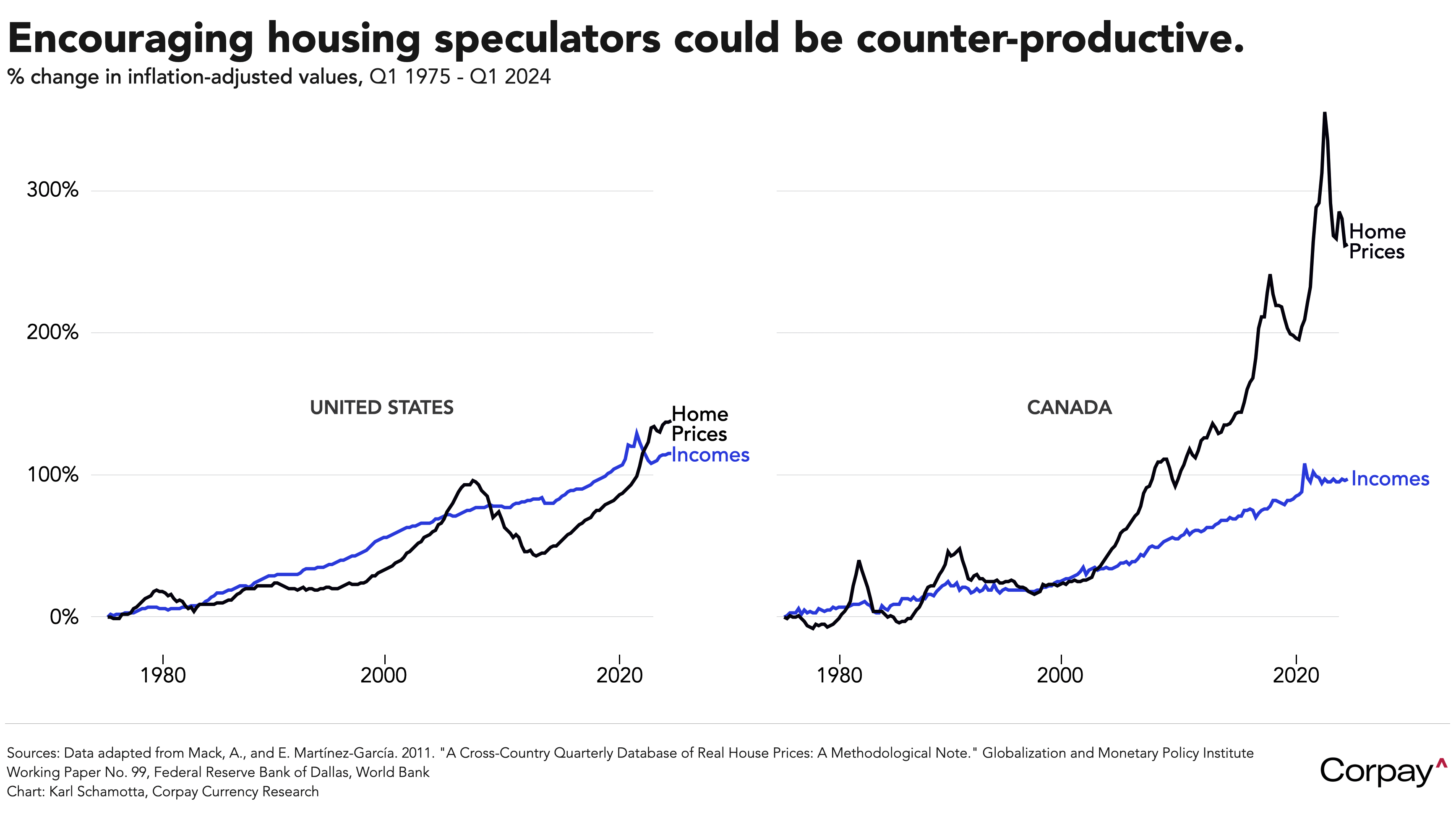 Market-implied odds on a move are hovering around the 85-percent mark, suggesting that the decision itself could prove dramatically underwhelming – but a surprisingly cautious tone could emerge in the accompanying Monetary Policy Report and post-decision press conference. Price growth showed signs of re-acceleration last month, with disinflation slowing across a range of categories while core measures sped up on a three-month annualised basis. High levels of immigration may be distorting job market signals. External demand remains strong. And the country’s speculation-addicted populace hardly needs any encouragement to push housing values to even-less affordable levels. We believe Tiff Macklem and Carolyn Rogers will try to downplay the Bank’s perceived easing bias, emphasising upside risks while warning markets not to expect cuts at consecutive meetings going forward.