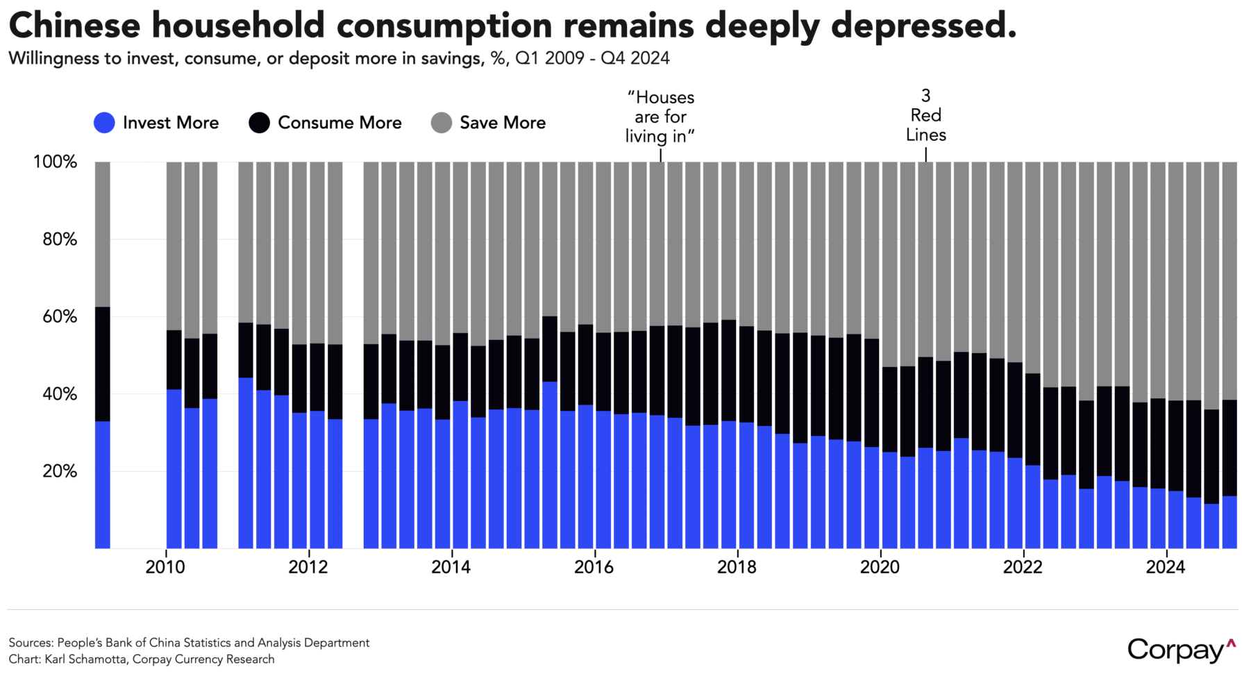 History might be on China’s side. Xi Jinping enjoys enormous domestic support, and as Dan Rather once put it, “Americans will put up with anything provided it doesn’t block traffic” – but Beijing’s staying power could depend on the extent to which the government abandons its long-standing shibboleths and takes steps to prioritise domestic consumption. The domestic economy is still caught in a deflationary spiral as property prices languish and the manufacturing sector struggles with overcapacity problems, and household confidence remains near post 1978-lows. Last week’s Politburo meeting saw a pullback in the full-throated support for the industrial sector that often characterised previous meetings, and resulted in pledges to speed up the pace of stimulus delivery to poor and middle class consumers, suggesting that a pivot is underway.