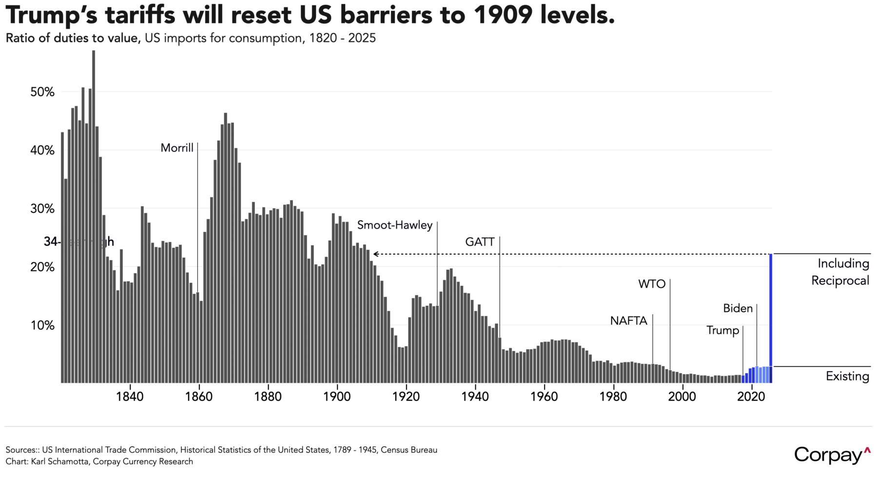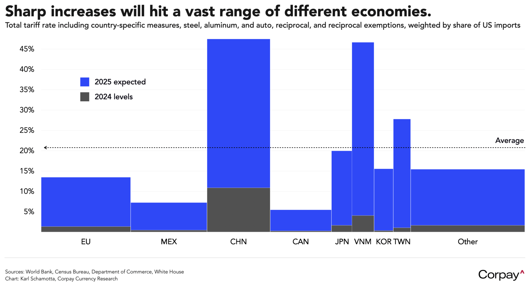 *Note that this is a “marimekko” chart, with the tariff rate depicted on the vertical axis and the share of US imports illustrated along the horizontal axis.