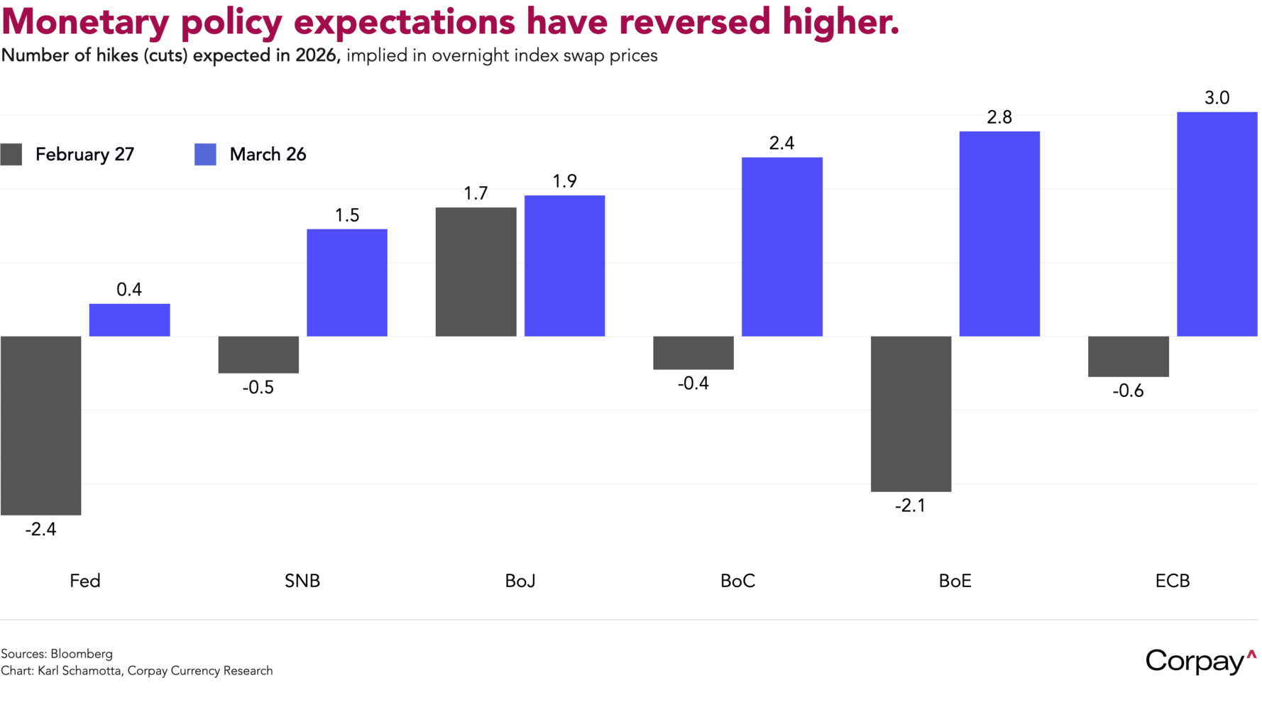 Currency markets are seeing frenetic trading action within relatively-tight ranges. On a trade-weighted basis, the dollar looks set to end the month roughly 2 percent higher (a modest gain by the standards of previous conflicts) as demand for liquidity overwhelms the structural case for weakness. Net energy importers in Europe and Asia are firmly on the defensive as traders downgrade growth expectations in the face of a severe terms-of-trade shock. Intervention threats from the Swiss National Bank are offsetting the franc’s safe-haven appeal, pushing it lower against all of its major counterparts. And the Canadian dollar is outperforming its rivals while trading with a weakening bias against the greenback as wide rate differentials—driven largely by domestic economic frailty—nullify a brighter export outlook.