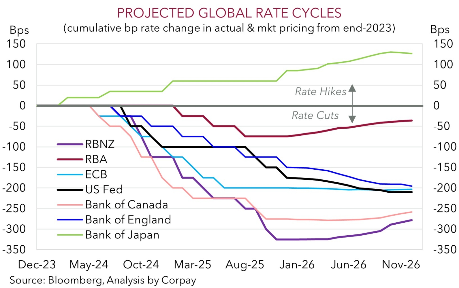 The improvement in risk appetite and reduction in US-related risk premium following overnight developments/comments related to Greenland has supported the NZD and AUD (see above). At ~$0.5845 the NZD is around the top of the wide range it has occupied since late-September. NZ Q4 CPI is due tomorrow (Fri 8:45am AEDT). Based on leading indicators NZ inflation may come in above the RBNZ’s projections. If realised, we think this could bolster the case looking for the RBNZ to (eventually) begin its interest rate hiking cycle (possible later this year), and in turn help the NZD recoup more ground.
