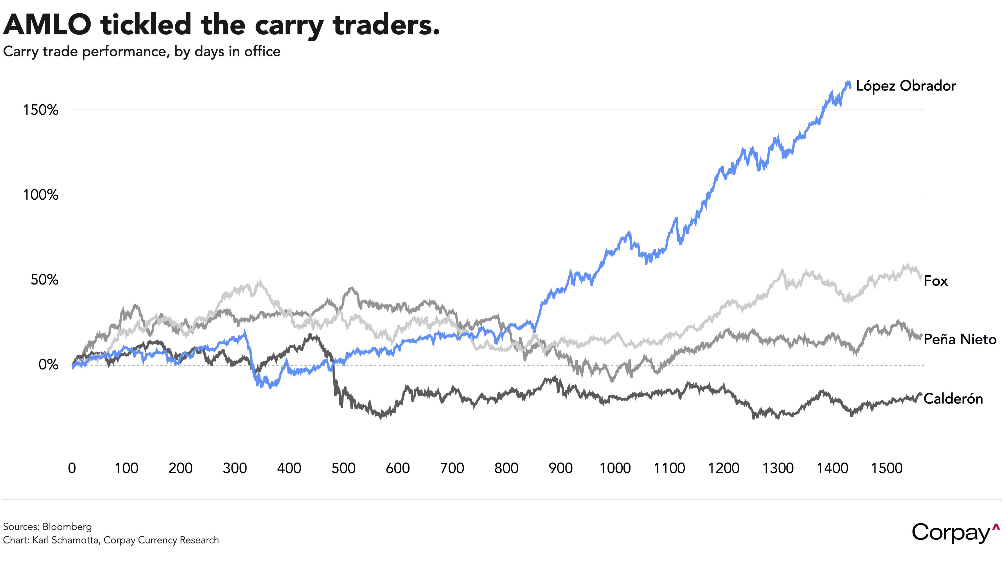 The Mexican peso is holding near the weaker end of its recent trading range in the run-up to this weekend’s presidential election. Andres Manuel López Obrador’s designated successor – Claudia Sheinbaum – is holding a 21-point lead in the polls, and investors expect her to maintain his market-friendly but somewhat interventionist policy stance if the governing coalition keeps its simple majority in Congress. This isn’t certain though: although Sheinbaum will very likely win the presidency, there is some evidence to suggest that support for her Morena party is beginning to ebb, opening an opportunity for the opposition to restrain executive power, and making an even more peso-positive outcome possible. In any case, the huge returns earned through “carry trading” – borrowing in the low cost yen and lending in the higher-yielding peso – that were earned during AMLO’s reign look unlikely to hit a domestically-erected political wall in the coming months.