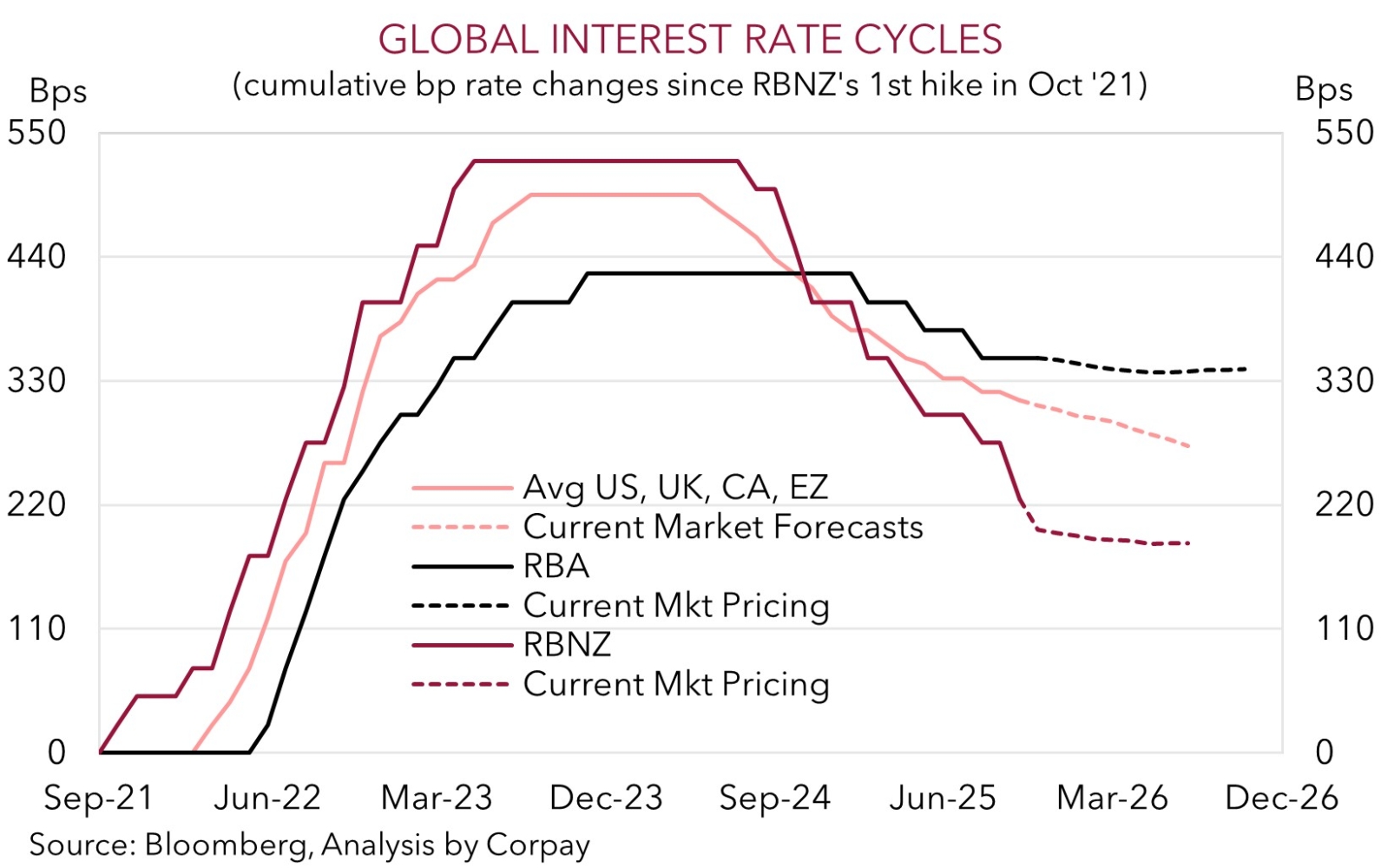 In Australia, the first release of the full monthly CPI inflation figures is in focus (Weds). Up until now the monthly CPI series has been a partial indicator. The new full monthly series will still have teething problems and might be volatile for a while given seasonal-adjustment issues. That being said we believe the data could again show the underlying inflation pulse remains sticky with annual CPI running around the upper end of the RBA’s 2-3% target band. This type of result could, in our opinion, reinforce the view that the RBA may not cut interest rates again this cycle. Markets are only discounting ~1/2 a RBA rate reduction by mid-2026. In the near-term, we believe more bursts of data driven AUD volatility are possible. But barring a sharp sustained deterioration in risk sentiment we feel the underlying improvement in US/China trade relations, more favourable yield spreads between Australia and other nations, and/or a pickup in growth momentum in China as stimulus measures gain traction should help the AUD claw back lost ground over coming months.