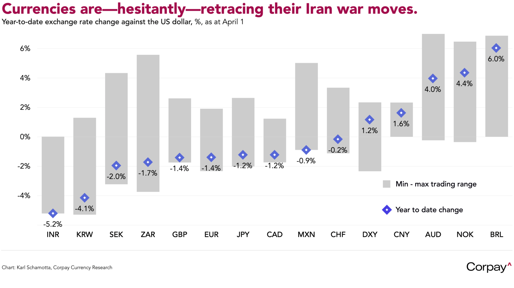 Oil prices are retreating and currencies are edging toward pre-war levels, with the dollar down almost 1 percent against a basket of its most-traded rivals this week. The energy import-sensitive euro, pound, and Swiss franc are climbing, while the yen and renminbi hold steady. The Canadian dollar remains fragile after yesterday’s January gross domestic product report showed the economy starting the year on a weak footing. Treasury yields are coming down, equity futures are setting up for another day of gains, and implied volatility is falling across asset classes as traders begin stripping out tail-risk hedges.
