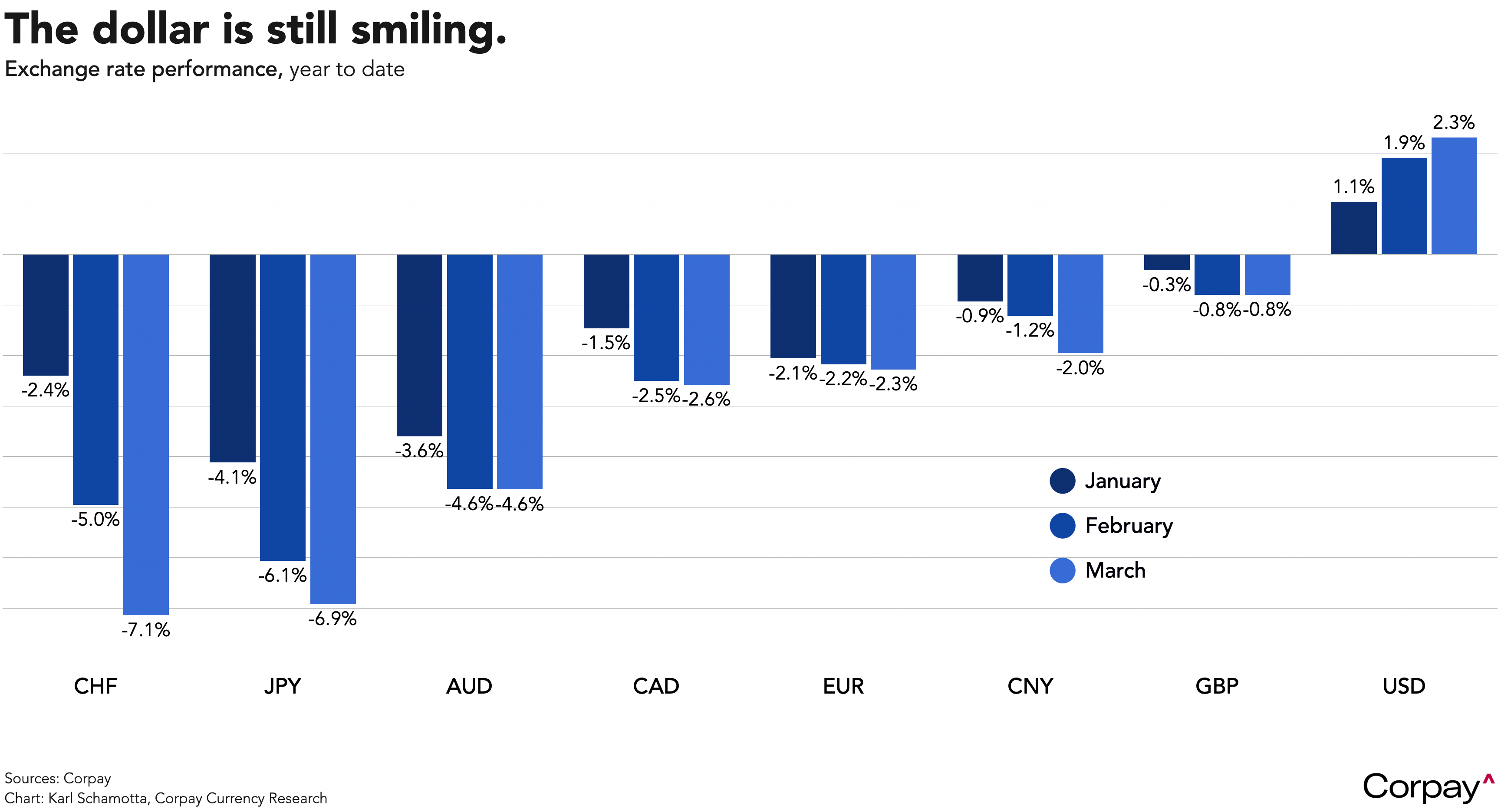 The US dollar is trading near a six week high after Federal Reserve Governor Christopher Waller again argued there is no rush to begin cutting interest rates. “Shorter-term inflation measures are now telling me that progress has slowed and may have stalled,” he warned in a speech delivered to the Economic Club of New York, “Though the February reading is estimated to step down from January’s, this recent pace would not represent significant progress toward 2 percent”. Noting that a number of his colleagues on the central bank’s rate-setting committee had turned more hawkish when preparing the latest “dot plot”, he said “In my view, it is appropriate to reduce the overall number of rate cuts or push them further into the future in response to the recent data”.