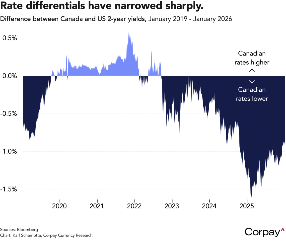 Friday’s US and Canadian employment reports are likely to have a greater impact on markets. December’s US non-farm payrolls report is expected to show just 25,000 jobs added in the month—a print that would put the labour market on track for its worst annual performance outside a recession in at least two decades—while Canada is seen creating roughly 30,000 roles in a fourth consecutive month of gains. Such an outcome could reinforce expectations for further easing from the Federal Reserve while ratifying the Bank of Canada’s move to the sidelines, and might help narrow still-wide cross-border rate differentials, putting the greenback under renewed selling pressure.