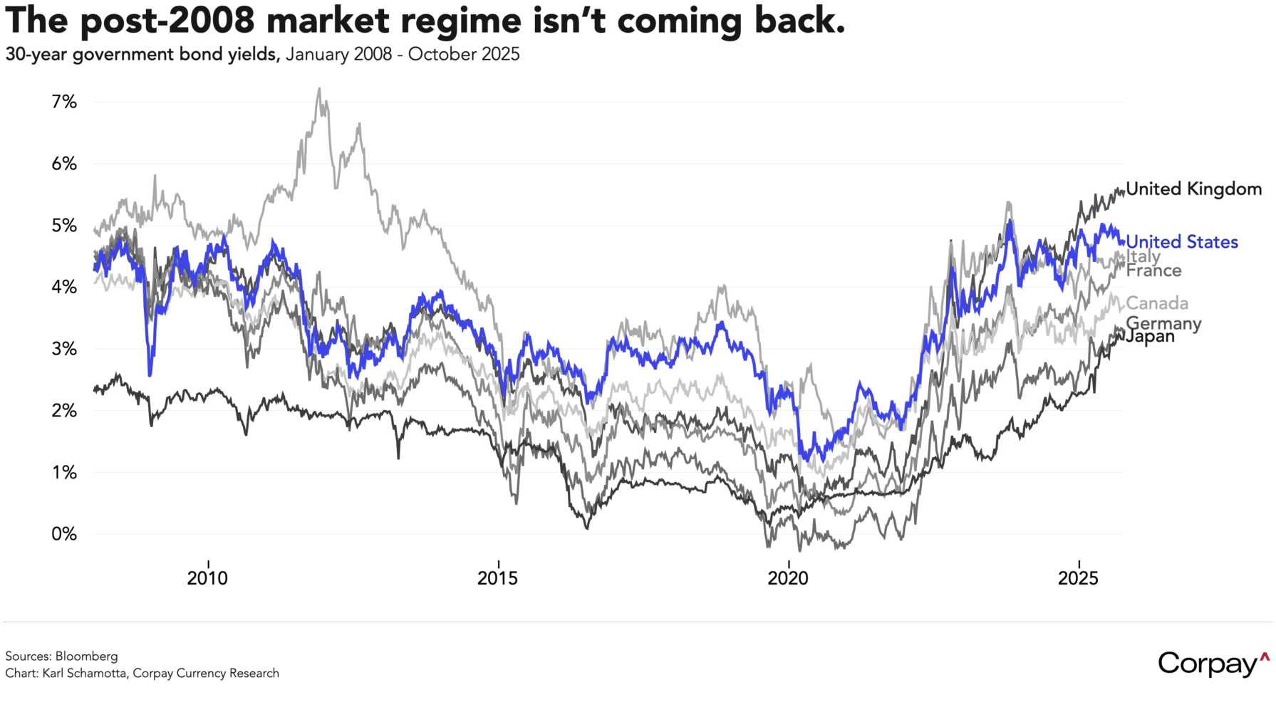 But worrisome things are happening in the broader financial system. This year’s astonishing rise in gold and silver prices, cryptocurrencies, and long-term bond yields is indicative—to us, at least—of deeper concern about the extent to which a “fiscal dominance” regime is emerging, in which central banks come under pressure to stabilise government finances by keeping interest rates artificially low and allowing inflation to run hotter. We’re not quite back to the early nineties—when semi-mythical bands of “bond vigilantes” roamed global markets punishing countries for fiscal incontinence—but investors, traders, and hedgers should be wary of non-linear risks that could unfold if the current state of calm is broken.