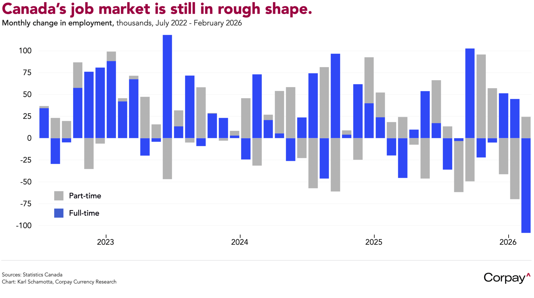 Canadian inflation pressures eased more than expected in February, giving the Bank of Canada room to remain on the sidelines at Wednesday’s decision. Statistics Canada data showed the headline consumer price index rising 1.8 percent year on year, down sharply from 2.3 percent in January as tax-related base effects improved, while the month-on-month increase of 0.5 percent undershot forecasts of 0.7 percent. Core inflation — measured as the average of the Bank of Canada’s preferred trim and median gauges — fell to 2.3 percent from 2.5 percent. The figures follow Friday’s deeply negative employment report, which showed the economy shedding 84,000 jobs in February after a 25,000 loss the month before, underscoring the degree of slack still present in the Canadian economy.
