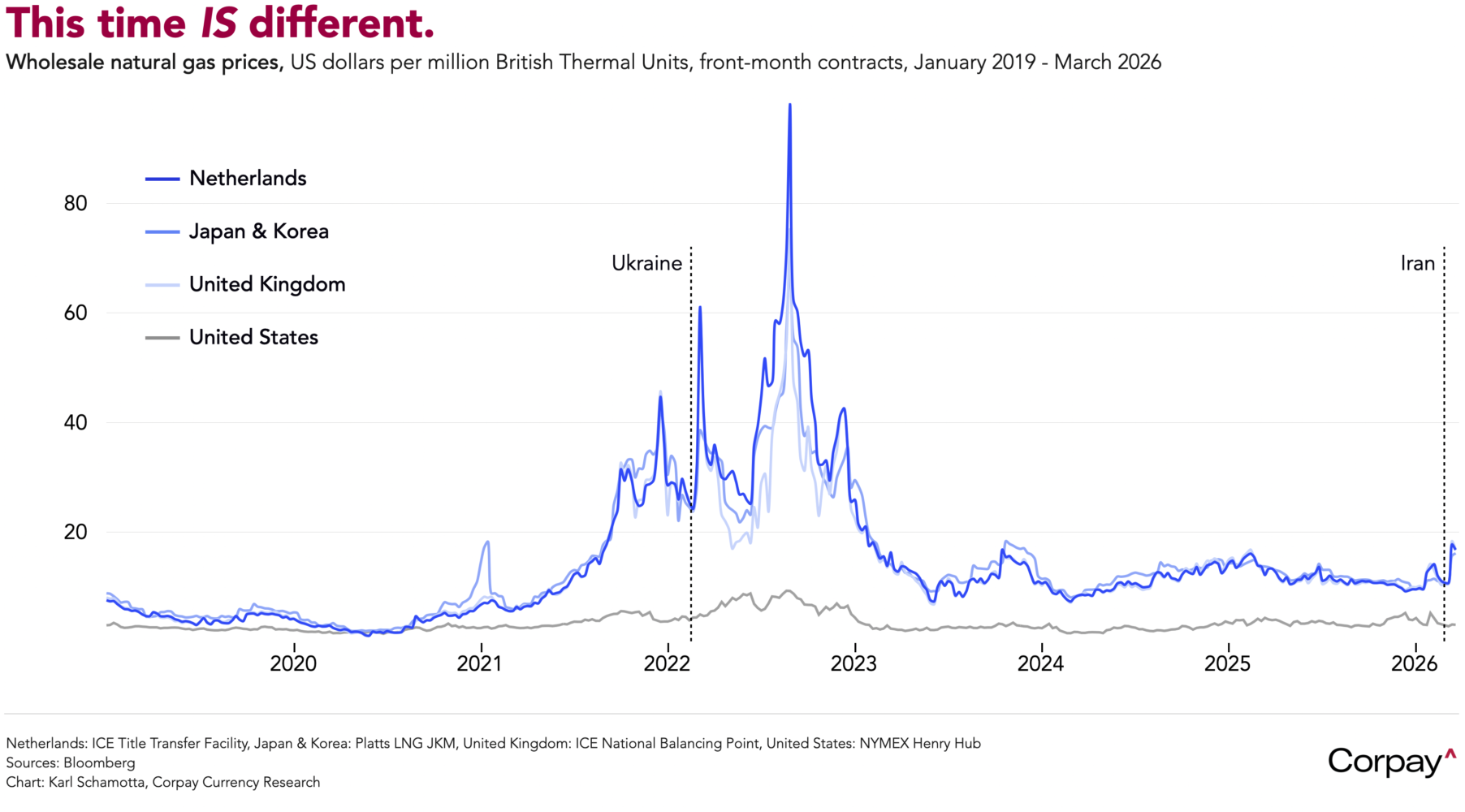 The Bank of England is expected to hold rates steady on Thursday, capping a sharp repricing since the outbreak of hostilities. Just two weeks ago, swap markets were assigning an 80 percent probability to a March cut and pricing in 50 basis points of easing this year. They now imply 15 basis points of tightening. Britain is acutely exposed: it imports roughly 40 percent of its oil and almost 60 percent of its natural gas, and inflation could rise markedly in the coming months if prices remain elevated. With no new forecasts due at this meeting, Monetary Policy Committee members may instead strip hints of an easing bias from the official statement. The 2022 playbook does not map directly, however: corporate pricing power has diminished, the labour market is considerably weaker, and the risk of second-round wage effects is much lower. The bar for actual rate increases remains high, and—failing a broader reversal in the dollar—the pound looks vulnerable to further selling.