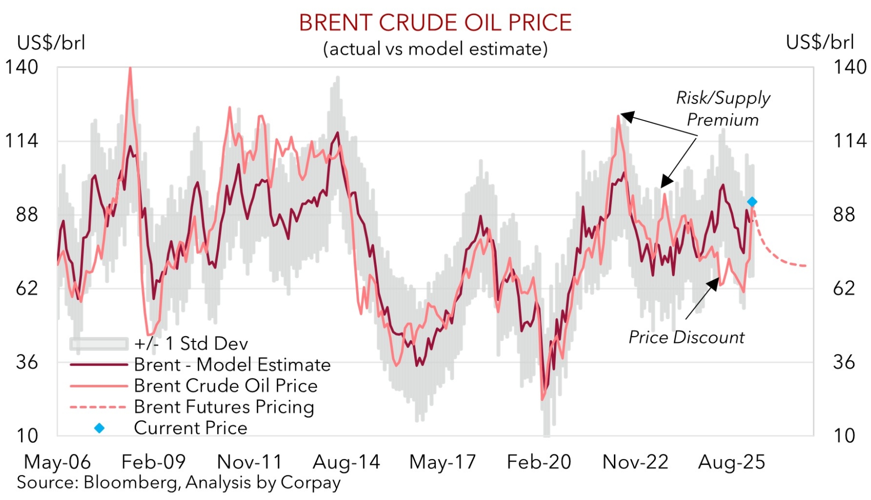As discussed above and over the past week or so, the situation in Middle East is constantly evolving and more bouts of market/AUD volatility should be anticipated over the period ahead. While the outlook for further RBA rate rises and a shift up in the level of Australian interest rates should act as an AUD downside support, the negative external risk environment is more than an offsetting factor. Added to that, with the AUD still tracking above our model estimates (we see ‘fair value’ closer to ~$0.6930), the negative growth/inflation implications for parts of Asia (and the global economy) created by higher energy prices, and potential for the USD to extend its recovery (due to safe-haven demand and positive correlation to oil prices), we continue to believe there are more downside risks for the AUD over the short-term.