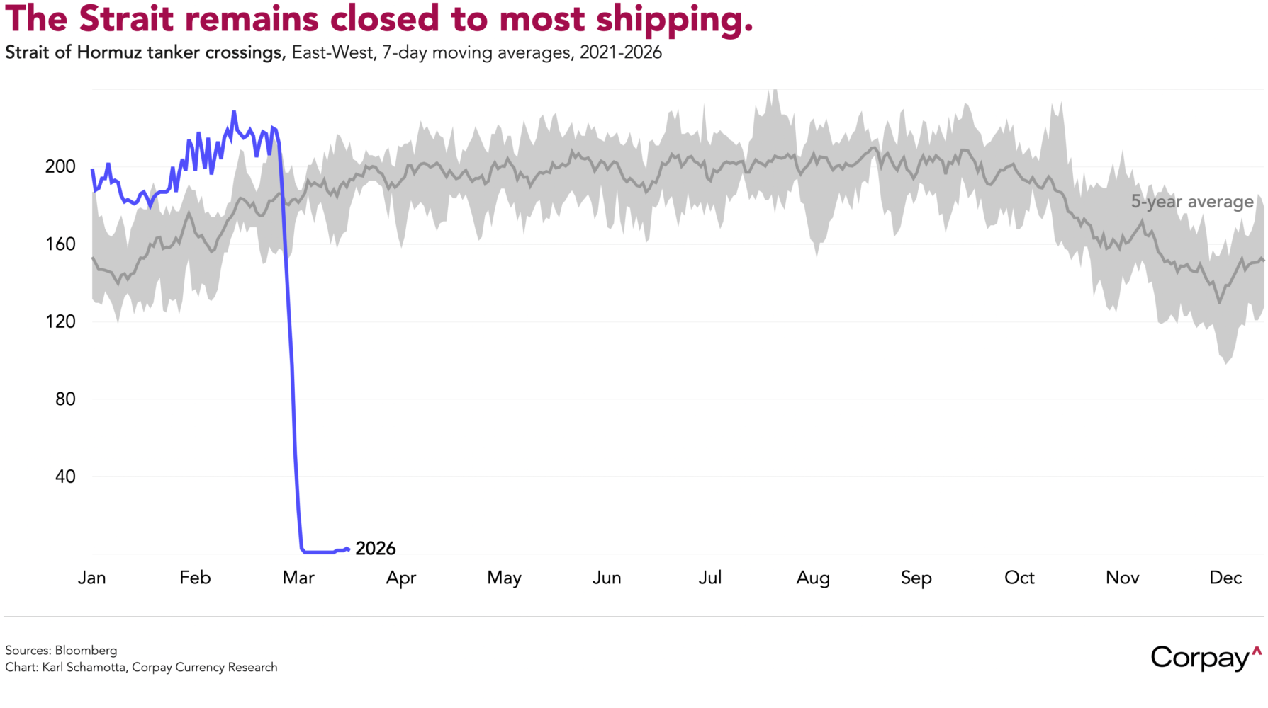 Similar dynamics are likely to appear elsewhere. Inflation expectations have risen across the world economy as the conflict chokes crude flows through the Strait of Hormuz—the narrow passage through which roughly a fifth of the world’s seaborne oil transits—driving gasoline, freight, petrochemical feedstocks, and food prices higher. Although a handful of tankers have crossed the Strait in the past week, production and shipment volumes remain far below normal, taking several hundred million barrels of crude off global markets.
