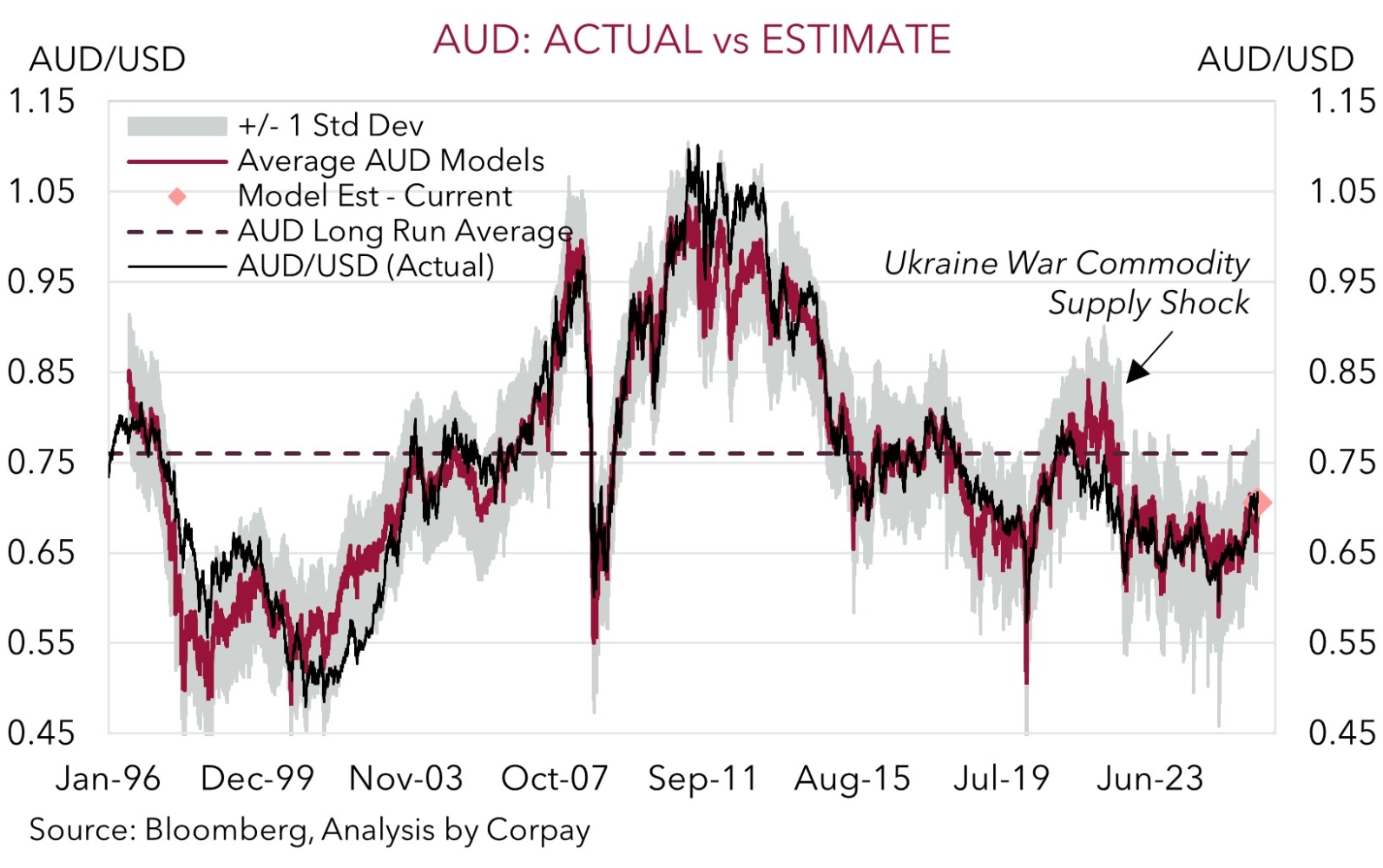 For the AUD, global factors, especially events in the Middle East, and swings in risk sentiment will remain the guiding force. As mentioned above, the effects on the global economy, particularly on activity across Asia, are still in their infancy. In our opinion, given how much more RBA policy tightening is already factored into the Australian interest rates curve (another ~54bps of hikes are discounted by year-end), the underlying global growth headwinds, and with negative domestic consequences of higher mortgage rates and fuel costs in the pipeline, the AUD could struggle to add to recent gains. Particularly as a lot of ‘good news’ already looks baked in given the AUD is tracking ~1.5-2.0% above our ‘fair value’ estimates.