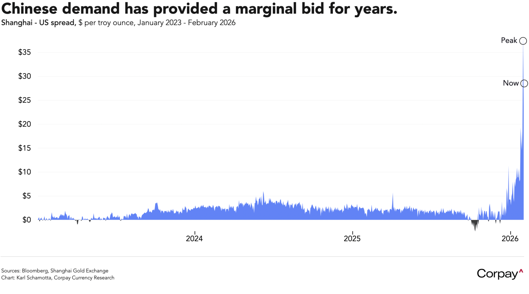 Instead, shifting conditions in Chinese markets could be at fault. In my view, Chinese investors facing negative real deposit rates and seeking an alternative to the country’s real estate market began piling into precious metals several years ago, driving cross-Pacific spreads higher and leading to reflexive** narratives among Western investors, particularly in silver, where thinner liquidity magnified price moves. Whether that demand is slowing due to a collapse in commodity trading houses, a seasonal drop in purchases around the Lunar New Year holiday, or a more profound reappraisal of return prospects, the Shanghai premium is coming down and global investors are stampeding for the exits, triggering forced selling among exchange-traded funds and other leveraged players. This correction could prove durable, but its longevity will largely depend on investor psychology, not any change in underlying fundamentals.