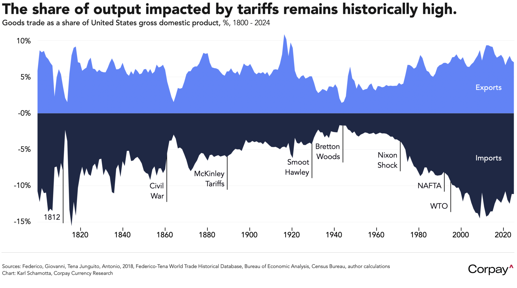 But the tariff headwinds facing the US economy haven’t dissipated meaningfully. With average trade-weighted tariff rates now standing at roughly 25 percent, the import tax burden remains at the highest levels in more than a century, particularly when calculated as a share of overall gross domestic product. Businesses expect profit margins to fall, consumers think living costs will rise, and economists see growth slowing as persistently-elevated uncertainty levels intersect with a less efficient tradeable goods sector to weaken overall activity.