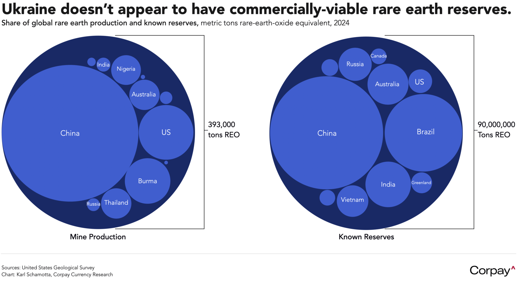 In contrast, the euro is still moving lower, suggesting that the signing of a long-telegraphed mineral deal between Ukraine and the US isn’t expected to materially reduce the geopolitical headwinds facing the common currency bloc. Kyiv and Washington yesterday agreed to establish a jointly-managed investment fund – backed by expected revenues from new resource extraction licenses – in an arrangement that the Trump administration has framed as a symbol of its commitment to Ukrainian sovereignty and a strategic move to secure returns on military aid. The pact contains no concrete security guarantee, and isn’t expected to yield significant monetary returns, given that there are no meaningful economically viable rare earth reserves in Ukraine – as Bloomberg’s brilliant Javier Blas has pointed out – and that its iron, coal, and resources are either locked behind Russian lines or are commercially available in the United States.