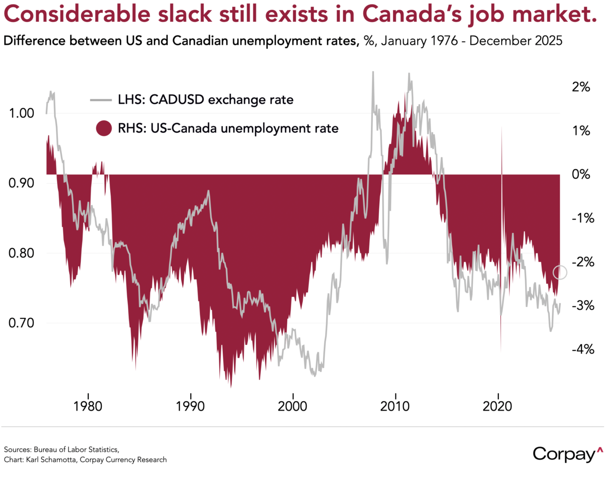 North of the 49th parallel, job creation stayed positive for a fourth straight month, but the unemployment rate rose as labour force growth exceeded expectations. That underscored lingering slack in Canadian labour markets and slightly widened the gap with the US, capping the loonie’s upside. While the economy has outperformed recent fears, it remains cyclically weak. Housing and energy investment—its two main growth engines—are still subdued, in my opinion leaving the Bank of Canada unlikely to contemplate tightening any time soon.