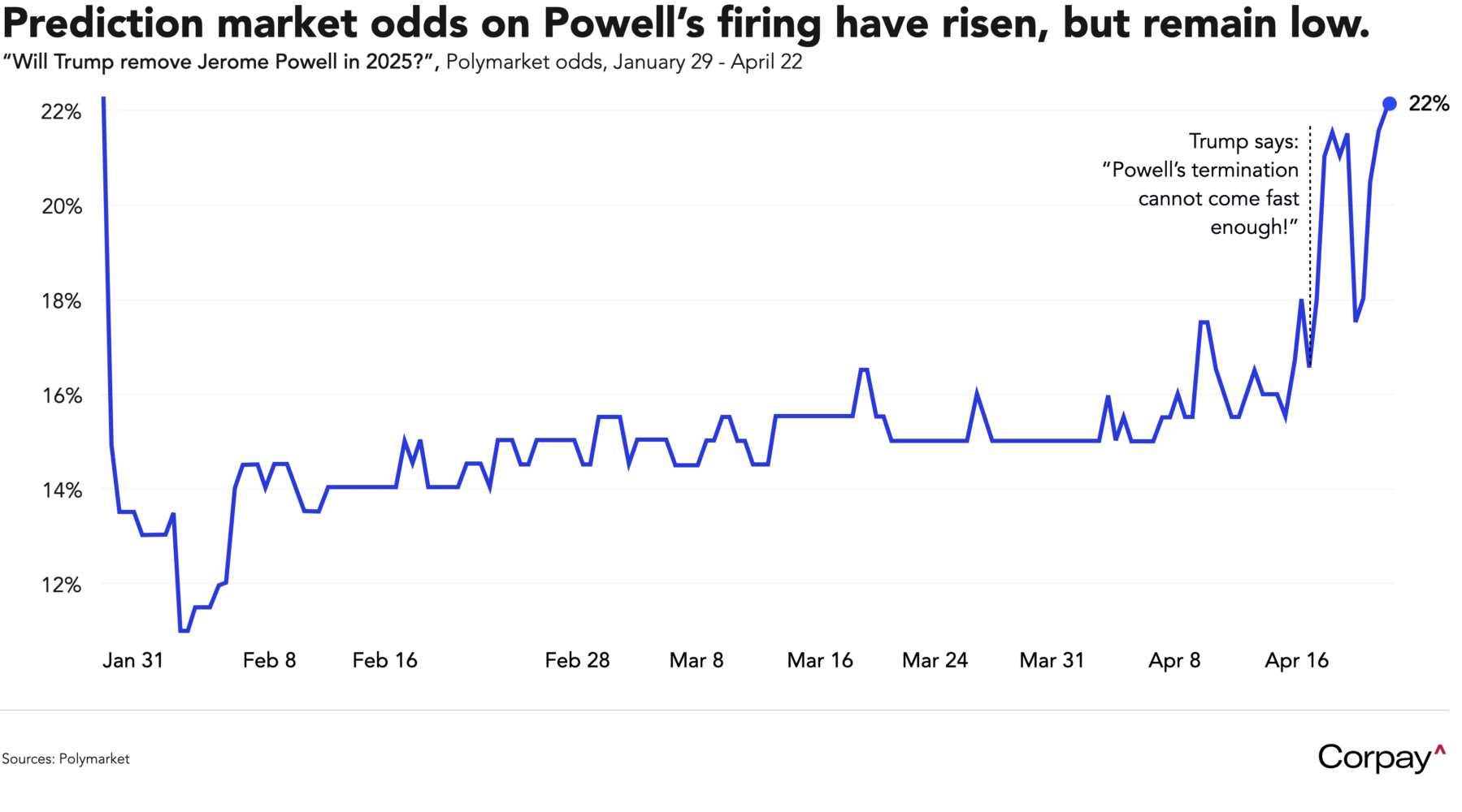 The assault on the Fed looks like a distraction. The Trump administration is well aware of the risks associated with firing the Fed chair – inflation expectations and long-term interest rates would almost certainly surge above today’s tariff-exacerbated levels, delivering a major growth shock – and Powell clearly serves a useful function in acting as a political scapegoat for the economy’s ills. Prediction markets agree: Polymarket is assigning just 22 percent odds to an early ouster.
