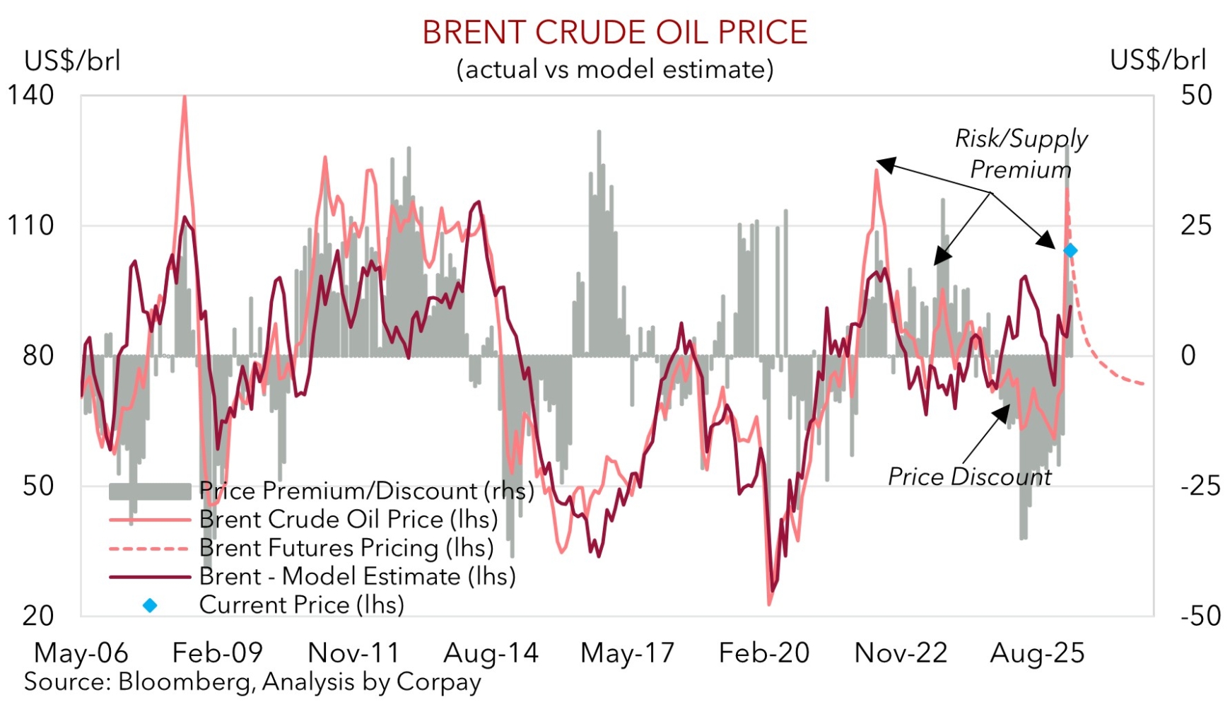 As mentioned, more twists and turns are likely in the Middle East, and a lot of the negative economic aftershocks are still in the pipeline. Inline with our warnings in March, we remain of the opinion that there are more downside than upside risks for the AUD in the short-term. In our view, based on the fragile situation in the Middle East, how much more RBA tightening is already discounted, the looming global growth slowdown, and with the negative domestic consequences of higher mortgage rates and fuel costs still to come upside in the AUD could be capped and fundamental downside pressures remain in place.