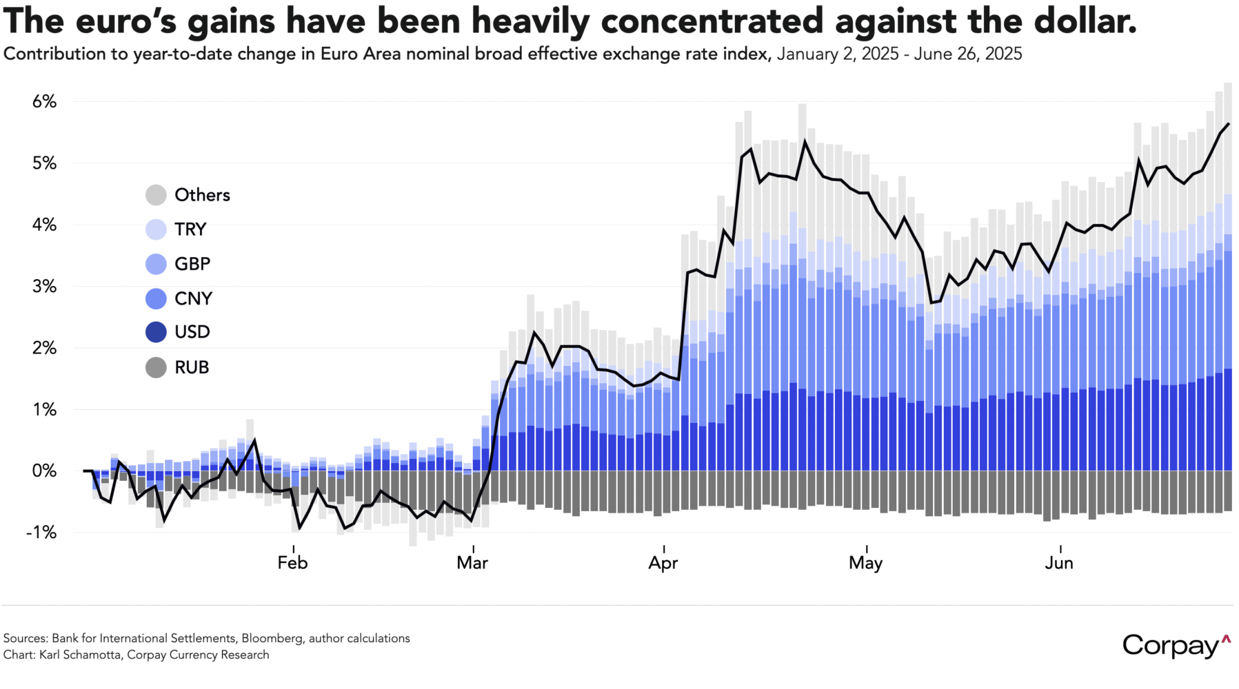 Across the pond, the euro appears to be gathering steam for a push through the 1.20 threshold against the dollar, but there are major hurdles ahead that could cap its advance. On a trade-weighted basis, the common currency is trading near its highest levels in five years this morning, with its year-to-date gains mostly concentrated against the greenback—and the dollar-driven Chinese renminbi—as the “risk premium” embedded in US assets increases, and more dovish views on the Fed’s likely policy trajectory tighten short-term swap rate differentials in its favour. Although dollar weakness could intensify in the coming weeks if the Trump administration doubles down on its tariff increases, puts more sustained pressure on the Fed, or passes a funding bill that widens expected deficits further, none of those outcomes seems sufficient to drive another significant leg down, and it is difficult to see the domestic European trigger that could push the euro higher. The European Central Bank is unlikely to make a hawkish turn, and improved sentiment levels will take time to show up in economic data releases—if they ever do. Momentum could clearly carry the currency further, but we think the move is getting stretched, and see potential for a reset lower if the dollar finds its footing.