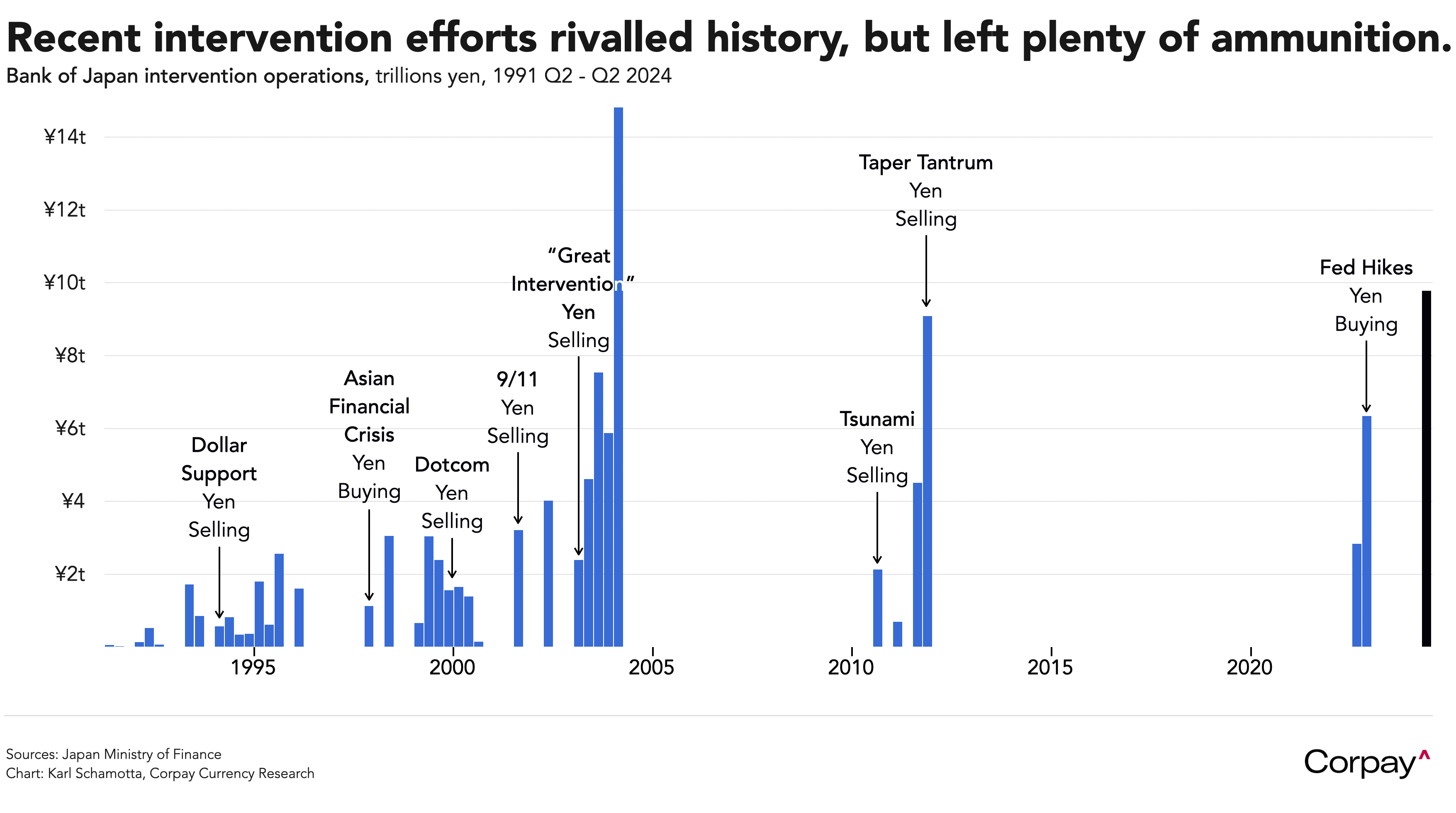 The Japanese yen remains weak after data was released showing that central bankers spent ¥9.79 trillion yen defending the spot rate in the last month. The intervention disclosed by the Ministry of Finance between April 26 and yesterday was slightly larger than market estimates derived from the Bank of Japan’s accounts, but isn’t big enough to trigger fears of a warchest so diminished as to limit further action. Extraordinarily-wide rate differentials and carry trade activities are keeping the currency under sustained pressure, but short-sellers remain wary of the central bank’s capacity to limit “disorderly moves” lower, so the exchange rate has declined at a relatively gradual pace in recent weeks. After this month’s action, we estimate Japan’s remaining currency reserves at roughly $1.09 trillion dollars, and authorities have a range of other tools available to limit weakness in the yen – including instructing the circa-$1.5 trillion dollar Government Pension Investment Fund to shift its asset allocation activities.