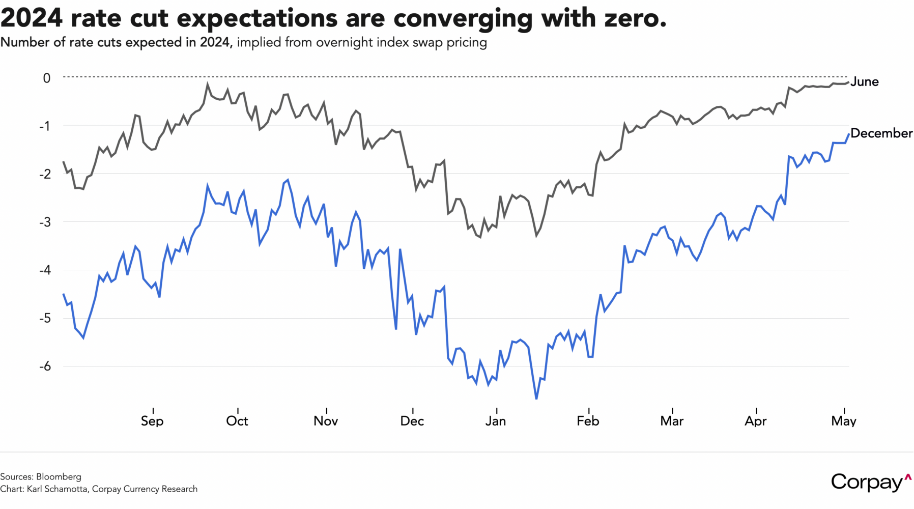 On the face of it, this afternoon’s Fed decision should be a snoozer. The statement is likely to remain essentially unchanged, and Chair Powell’s data-dependent reaction function is already well understood. The rate-setting committee said last month that it “does not expect it will be appropriate to reduce the target range until it has gained greater confidence that inflation is moving sustainably toward 2 percent”. Speaking at an event with the Bank of Canada’s Tiff Macklem in March, Mr. Powell said “The recent data have clearly not given us greater confidence and instead indicate that it is likely to take longer than expected to achieve that confidence. Given the strength of the labour market and progress on inflation so far, it is appropriate to allow restrictive policy further time to work and let the data and the evolving outlook guide us”. We expect similar messaging to emerge in today’s post-decision press conference.