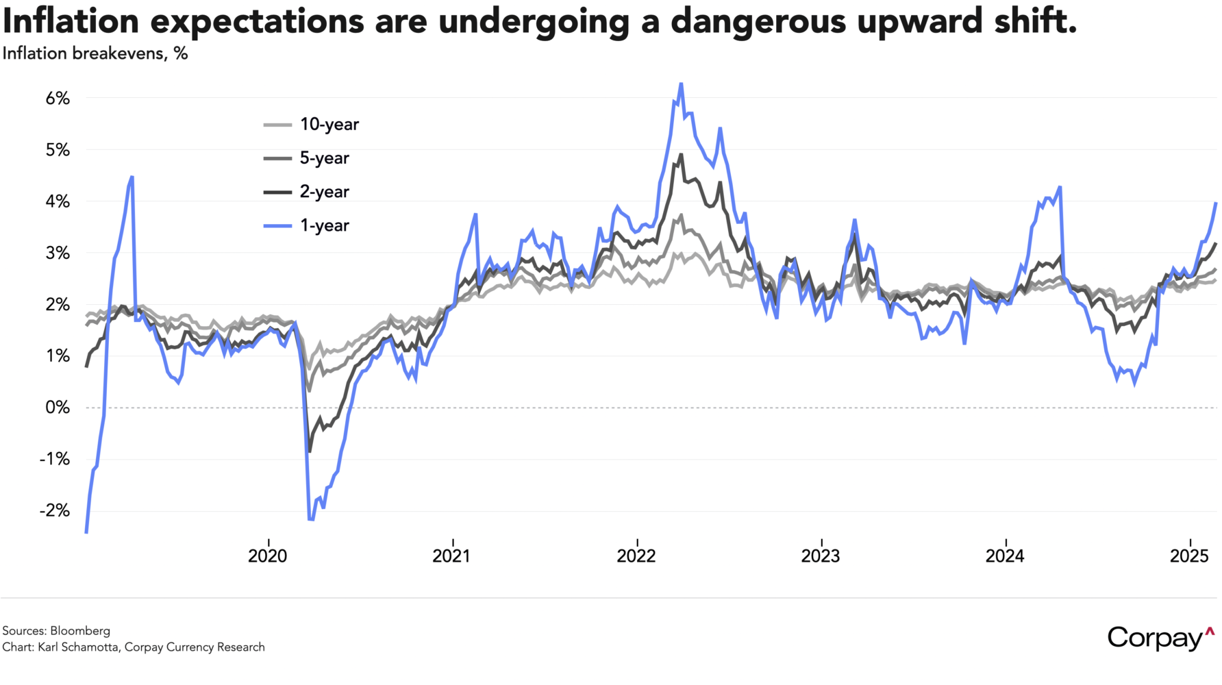 Inflation fears could ratchet higher in the coming hours: in a post on his social media platform, Truth Social, President Trump this morning said “Today is the big one: reciprocal tariffs”. As far as we understand the concept, this would not be the big one: equalising tariff rates with other countries would mostly impact imports from developing countries in Latin America and Africa which maintain high tariff barriers on agricultural products, and although European and Japanese auto sectors could come into scope, a substantial share of their manufacturing activity already happens in the United States. The proposed 25-percent tariffs on Canada and Mexico would be far more impactful. But it’s possible that we’re wrong, and the administration intends to apply a universal tariff under the “reciprocal” rubric.