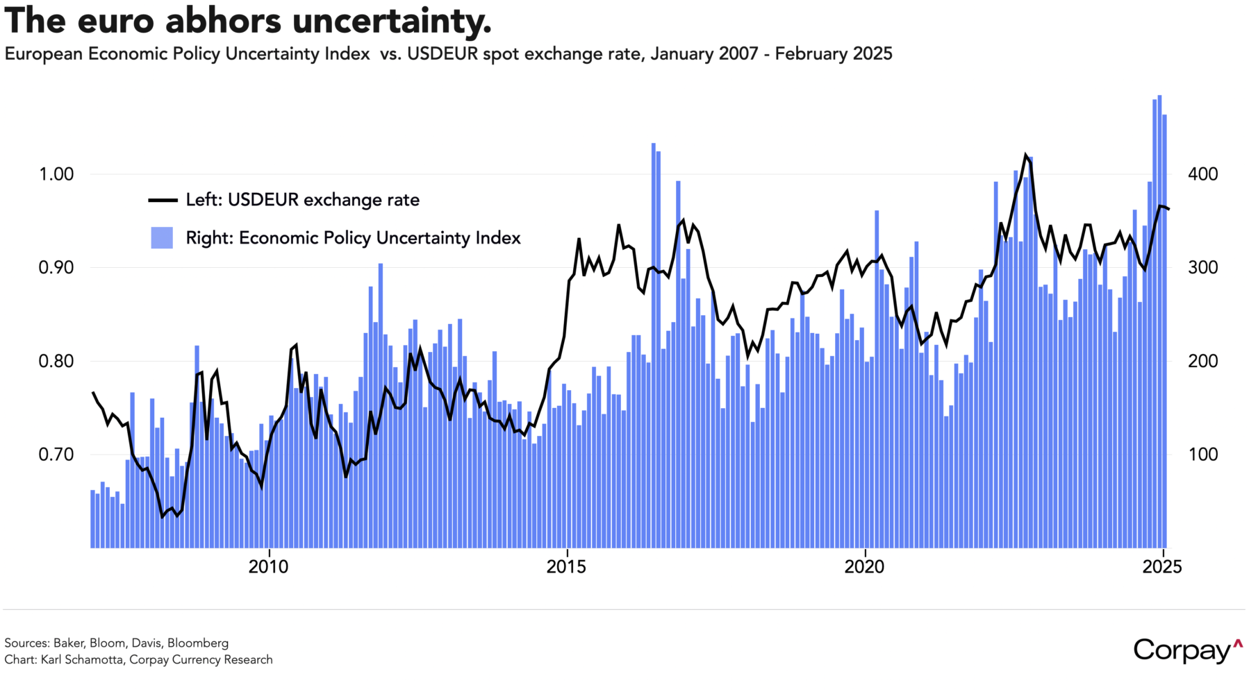 We’re not sure the sense of optimism will last. Foreign exchange markets, it must be said, are notoriously bad at processing geopolitical implications, and often fail to adequately price abstract shifts in long-term economic outcomes. If a peace “deal” is made, European countries could be on the hook for hundreds of billions in lending to Ukraine’s government and trillions in new military spending as an emboldened Russian war machine threatens the Union’s eastern flank. For a bloc that has for decades struggled to weigh domestic trade-offs against forming a common front on joint debt issuance, defence policy, and trade strategy, this could prove impossible to manage.