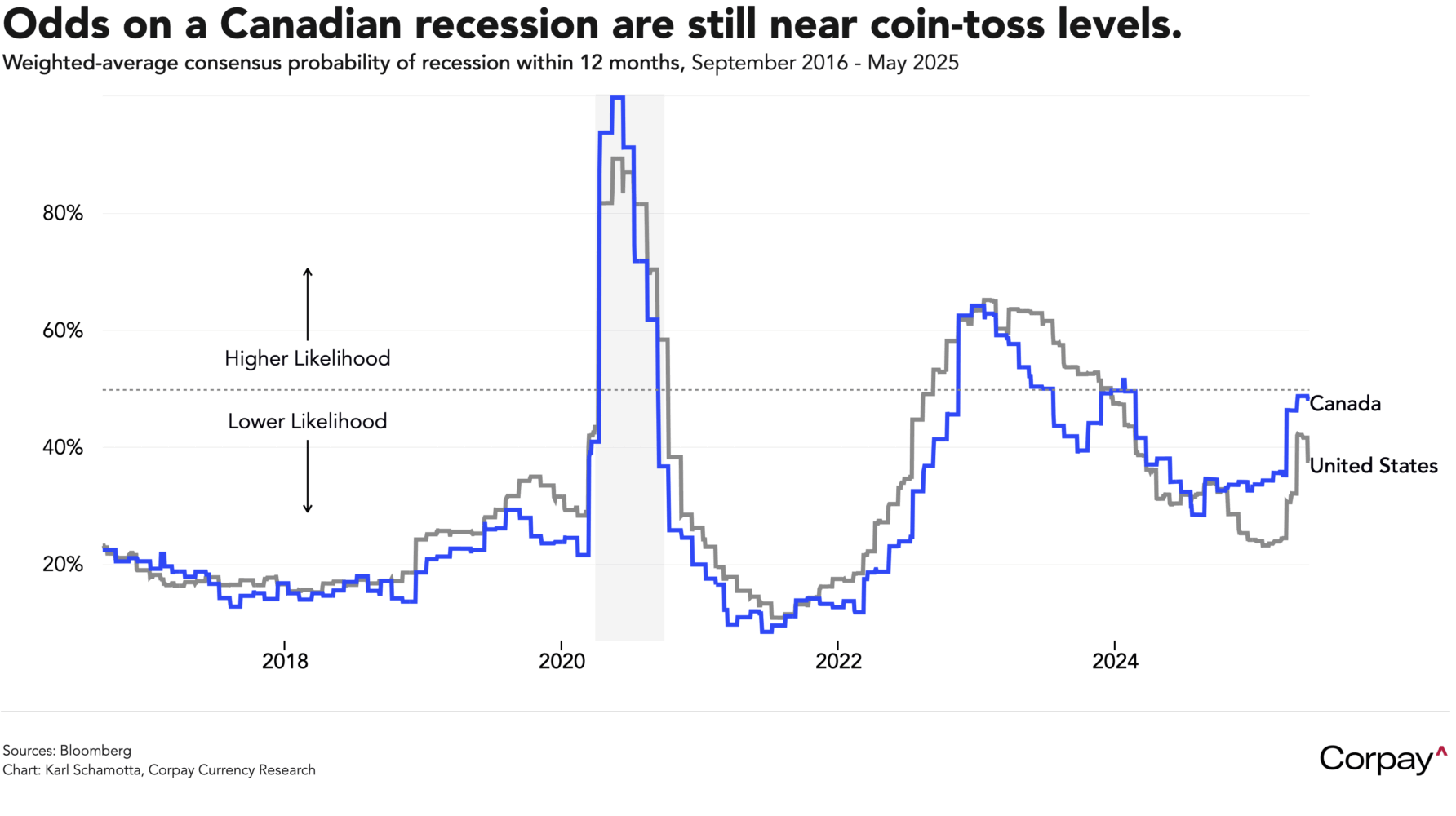 Tomorrow’s data releases could add more colour. The US personal spending and income report should shed more light on consumer behaviour and price developments in April – ahead of the president’s climbdown on Chinese tariffs – and Canada’s gross domestic product report might help investors better assess the odds of an economic downturn this year. At the moment, the economic consensus sees the odds of a recession in Canada sitting near coin-toss levels, but that could shift dramatically if evidence of continued consumer resilience appears in the growth data.