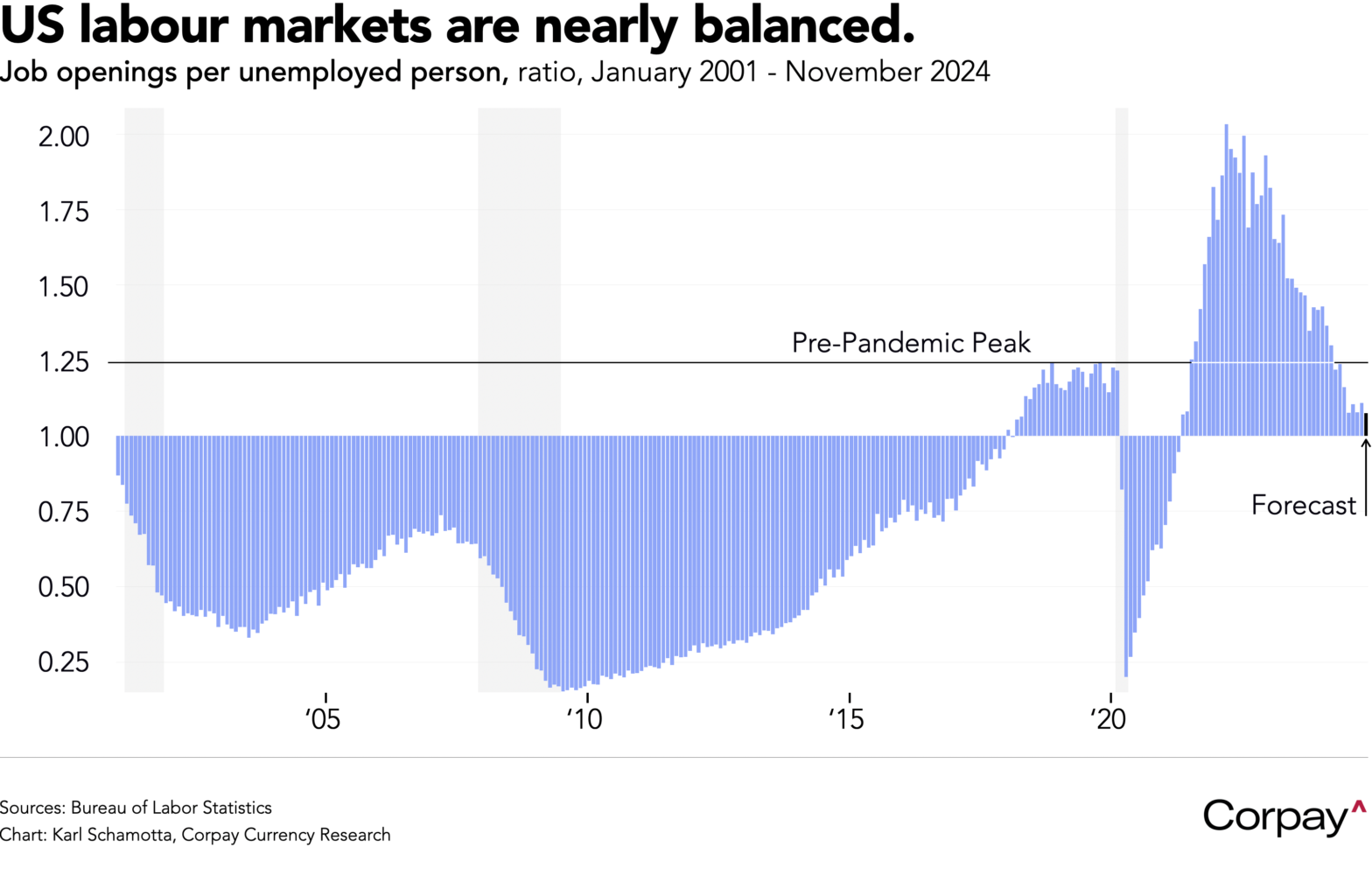 This morning’s US Job Openings and Labor Turnover Survey is expected to show the vacancy-to-unemployed worker ratio moving below 1.10 in November, signalling a continued moderation in underlying job market conditions toward a more balanced state. We think this will ultimately translate into a stepped-up pace of easing from the Federal Reserve, but for now, should reinforce expectations for a prolonged downshift in the cadence of rate cuts. In a speech given yesterday, Governor Lisa Cook said “All along, I envisioned moving more quickly in the early stages of our easing campaign and then easing more gradually as the policy rate came closer to neutral. In addition, since September, the labour market has been somewhat more resilient, while inflation has been stickier than I assumed at that time. Thus, I think we can afford to proceed more cautiously with further cuts”.