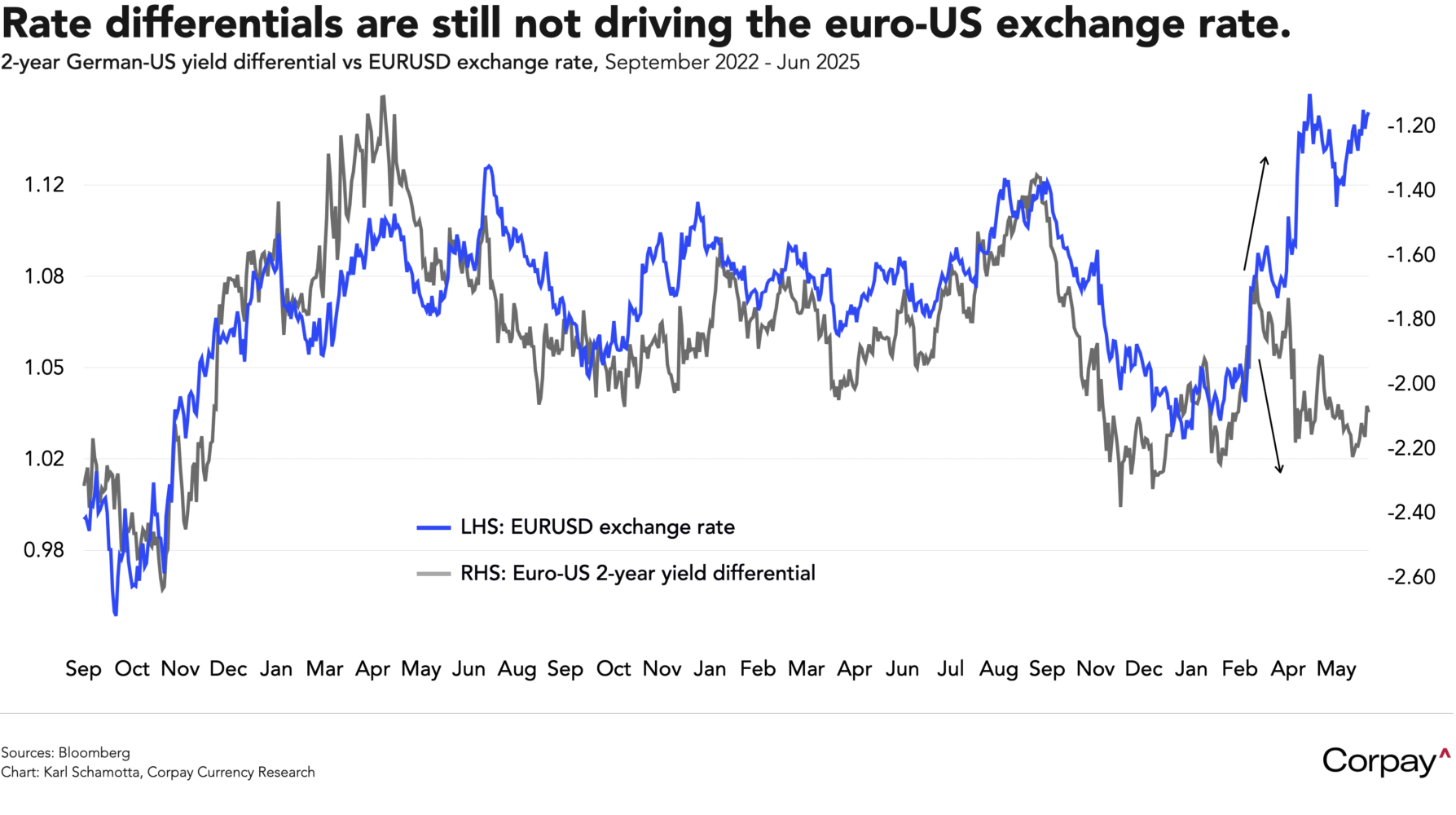 Policy settings have played an increasingly marginal role in influencing the euro’s direction in the last three months. Instead, optimism surrounding Germany’s fiscal stimulus plans, a sharp downgrade in views on the US economy, and a slower-moving reallocation away from American capital markets have driven the common currency to a 10-percent gain this year. We have reservations – mostly derived from what US Treasury Secretary Scott Bessent likes to call Europe’s “collective action problem” – but markets are overwhelmingly bullish on the currency, with the difference between one-month and one-year risk reversals pointing to a sustained advance in the year ahead.