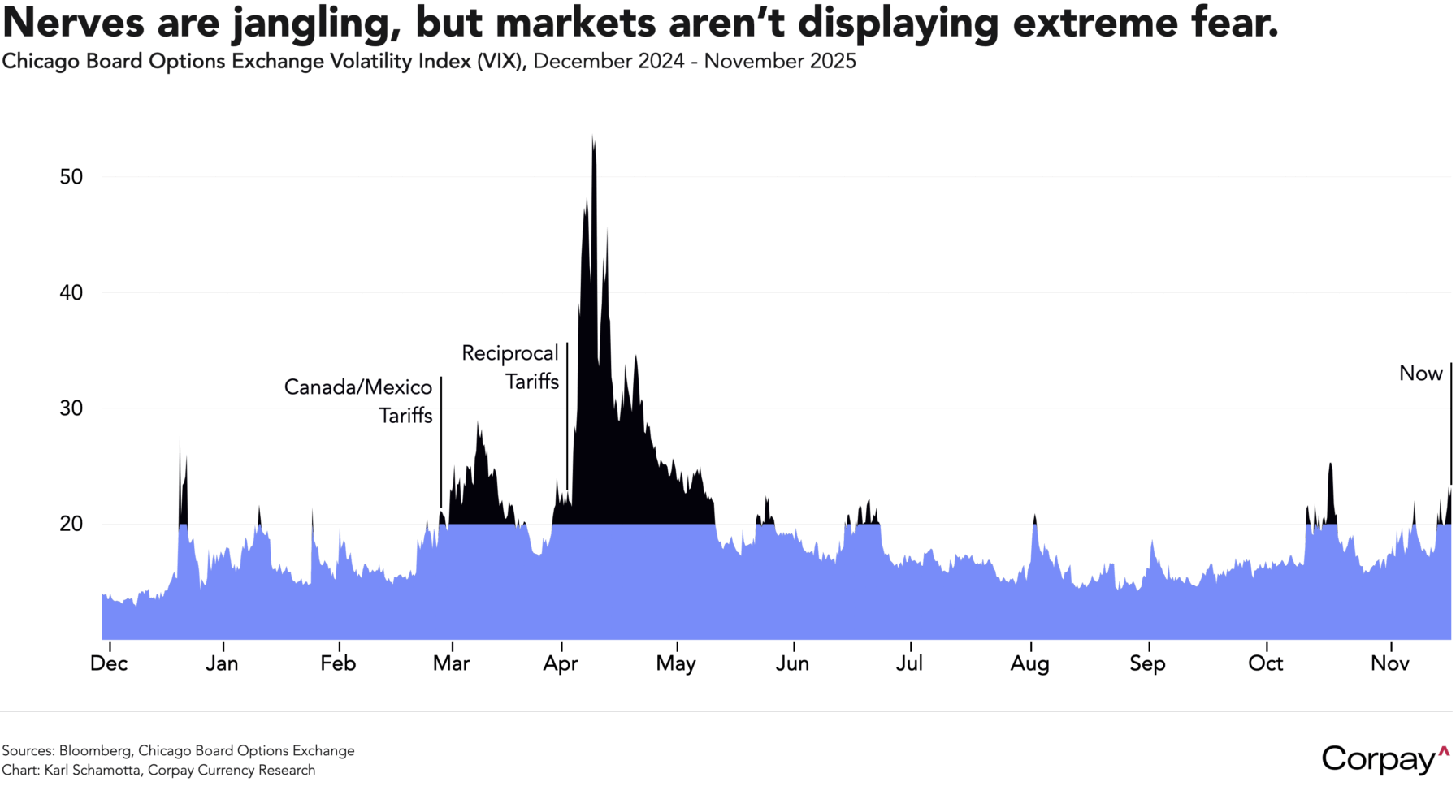 The Japanese yen looks uncharacteristically weak, given the worsening risk backdrop. Tensions with Beijing over newly installed Prime Minister Sanae Takaichi’s support for Taiwan, worries about the scale of the government’s planned stimulus, and corporate vulnerabilities tied to the US technology boom are eroding the currency’s traditional safe-haven appeal, muting its response to negative headlines. This may present tactical opportunities for hedgers, but the effect is unlikely to persist if markets lurch lower again—Japan’s enormous net international investment position and its central role in funding global carry trades still make the yen, alongside the Swiss franc, the principal counterweight in the global currency risk pendulum.