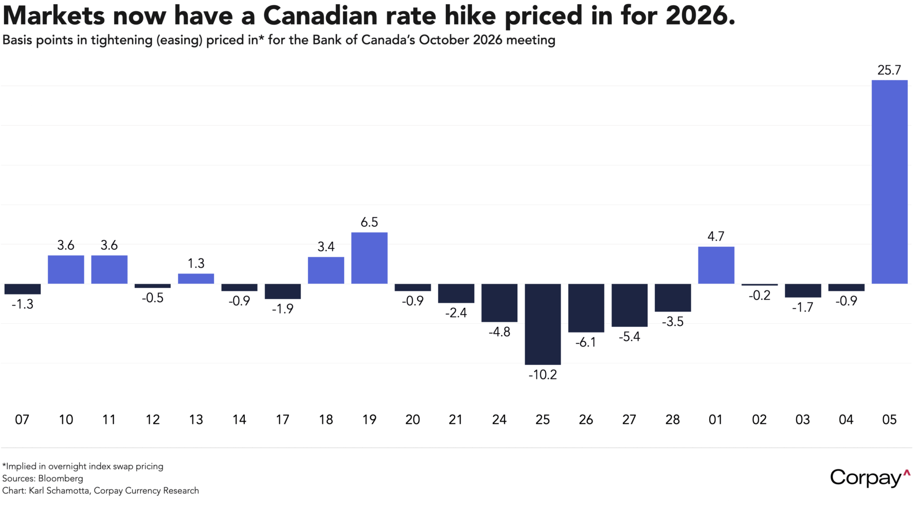 But swaps traders are suddenly pricing in a rate hike at the Bank of Canada’s October 2026 meeting. We think this should act as a warning to those expecting a smooth—and market-supportive—easing trajectory from the Fed over the year ahead, especially given that similar turning points have now been hit in Japan, Australia, and New Zealand. If a hawkish repricing in Fed expectations unfolds in the early new year, markets could perform in entirely unexpected ways.