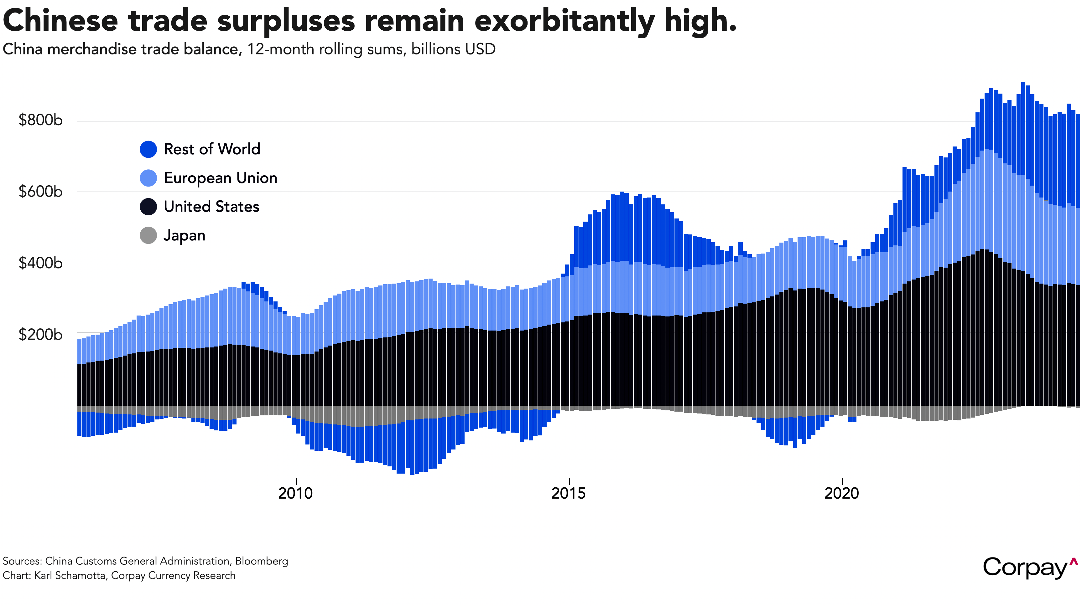 Chinese exports rose 1.5 percent year-on-year in April, reversing March’s seasonally-distorted -7.5-percent decline. Imports climbed 8.4 percent from a year earlier, but with the rise concentrated in countries that manufacture advanced electronic components – Taiwan, South Korea, the Netherlands, and the US – it seems likely that domestic demand continues to lag export growth. On balance, the country is running a merchandise trade surplus nearing 0.75 percent of global gross domestic product (on our calculations), meaning that the country is sustaining economic growth by drawing upon domestic demand in the rest of the world, even as it crowds out production and employment in its major trading partners. We suspect that another round of trade conflicts is in the offing, even if Mr. Trump fails to garner a second term in the White House.