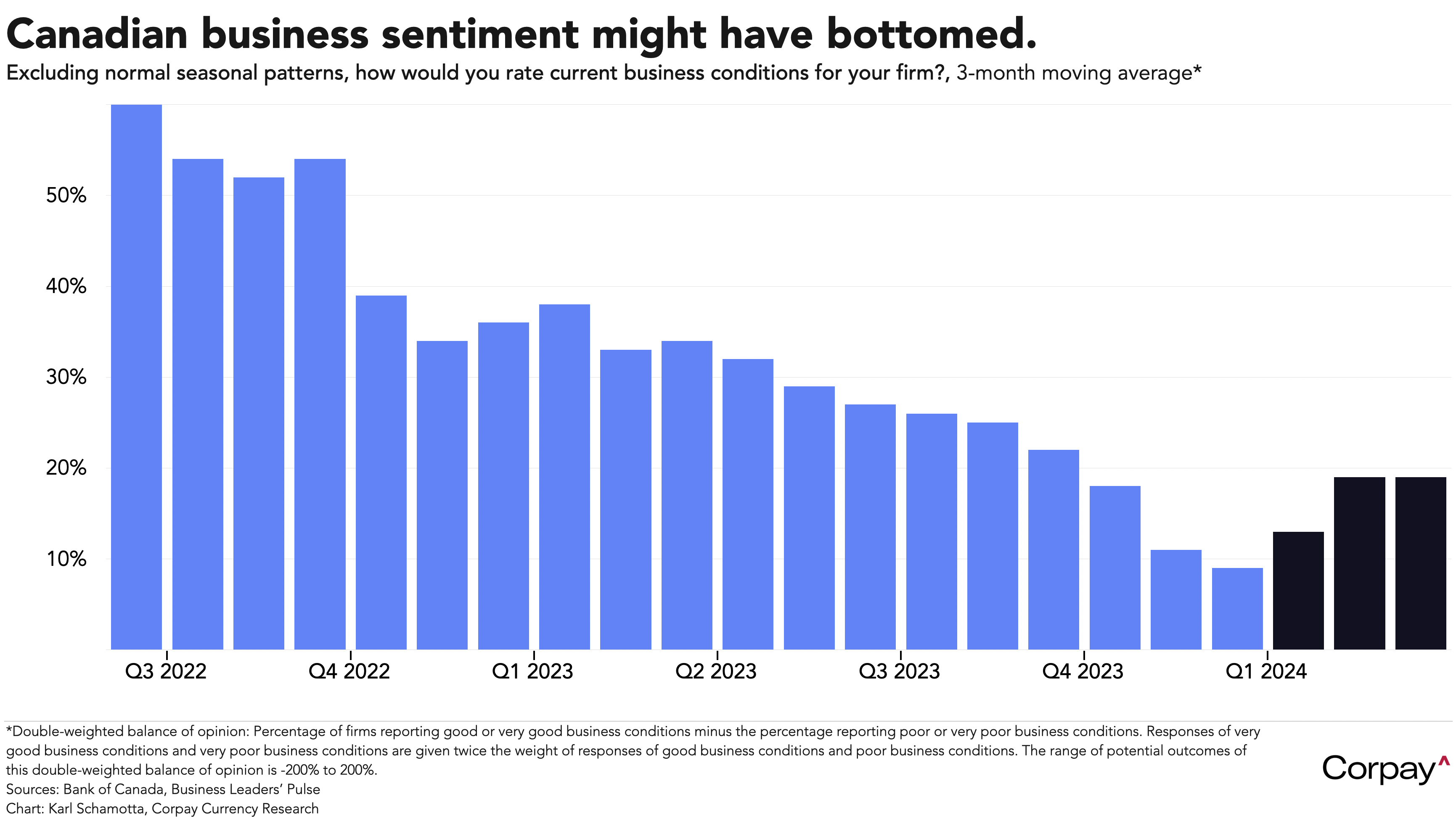 And here in Canada – where potential assassins are taken out by a guy who wears a bicorn hat and carries a mace – investors will get the last major data releases before the central bank’s July 24 decision. This morning’s Bank of Canada survey data should show price expectations continuing to come down, but we’ll also be looking to see whether the improvement in business and consumer sentiment seen in the first quarter has continued. If optimism returns in a sustained way (particularly in household views on the real estate market) rate differentials could tighten slightly, helping bolster the Canadian dollar into tomorrow’s inflation report – which should show the Bank’s preferred core measures decelerating at a very gradual pace.