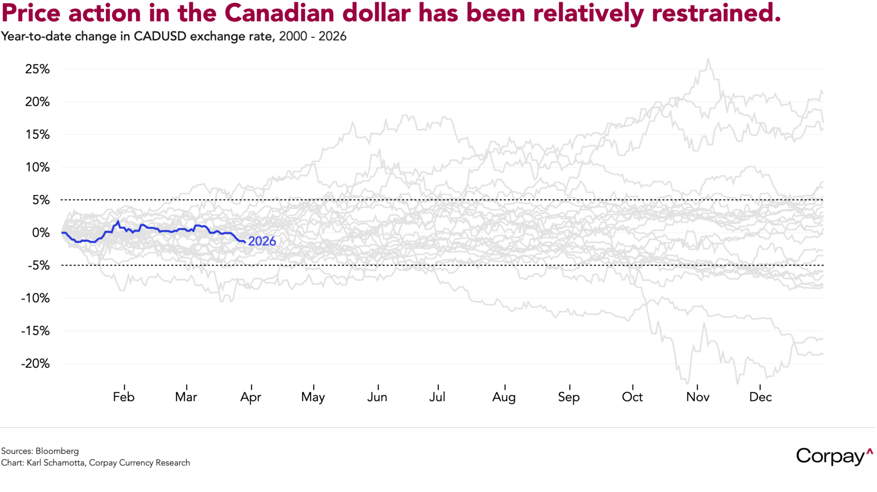 The Canadian dollar has traded in a remarkably narrow band since the outbreak of the war on Iran in late February, drifting modestly lower despite the dramatic upheaval in global energy markets. On one hand, surging crude oil prices—up more than 40 percent from pre-conflict levels—have provided a natural tailwind for the loonie, given Canada’s status as the world’s fourth-largest oil producer and a net energy exporter. Yet that support has been almost perfectly offset by a renewed wave of safe-haven demand for the US dollar, which staged its largest two-day rally in nearly a year when hostilities began, while lingering uncertainty from Washington’s tariff regime and the Bank of Canada’s increasingly constrained monetary policy outlook have further capped any meaningful appreciation. For now, traders are lacking the conviction needed to push it decisively in either direction, but that could change—likely in a bullish direction—in the event of a shift in the narrative surrounding the war.