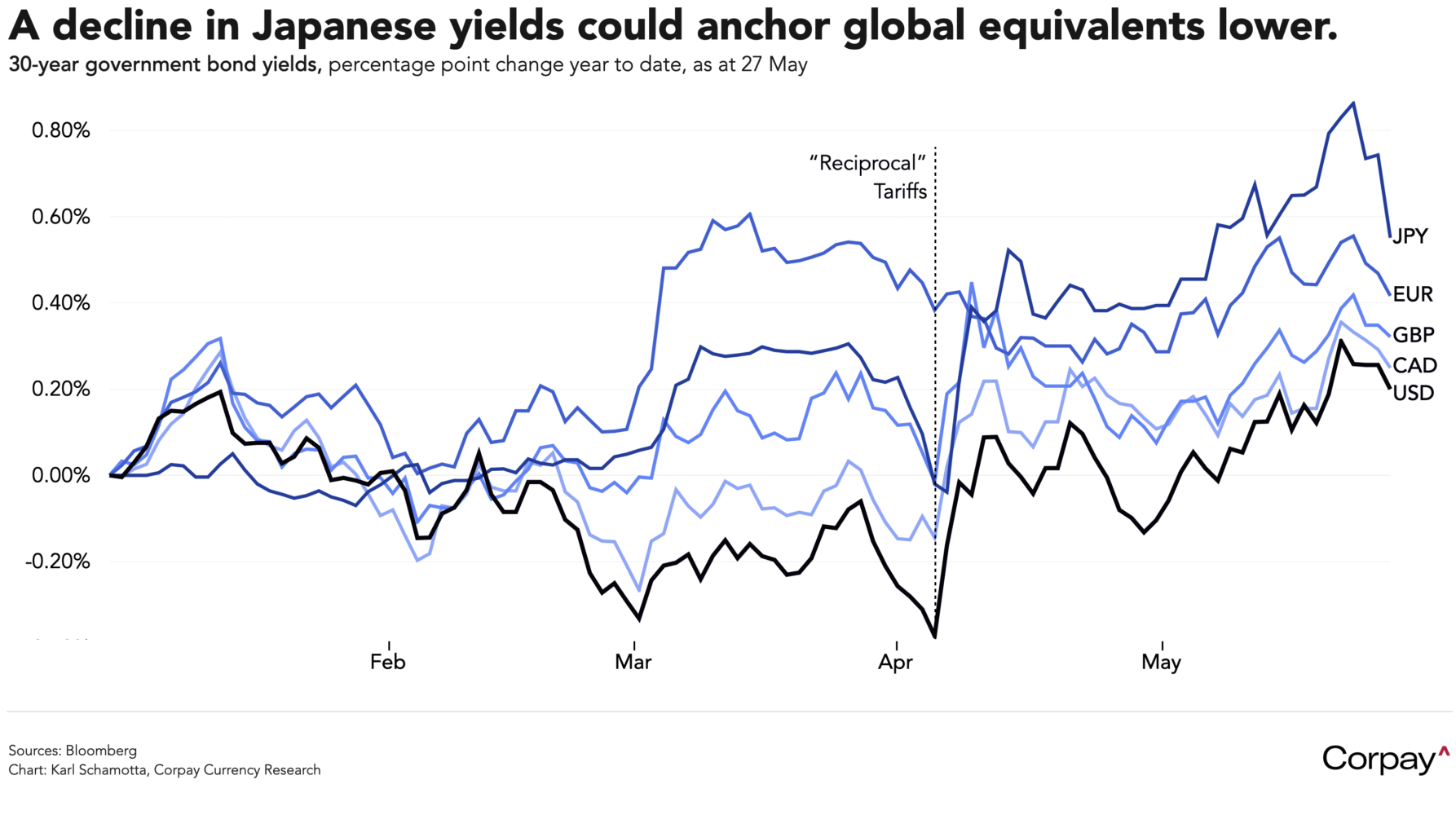 Bonds are rallying across the advanced economies on hints that Japanese authorities could take action to stem upward pressure on long-term yields. According to several media reports, the Ministry of Finance last night sent a questionnaire to fixed-income market participants in an attempt to assess current conditions and gauge appetites for long-dated issuance, suggesting that officials may work to shift bond supply toward shorter maturities, where demand is stronger. Given the importance of Japanese investment flows for US markets – and the role that the country’s borrowing costs play in providing an anchor for global rates – this is seen as potentially relieving pressure on governments elsewhere.