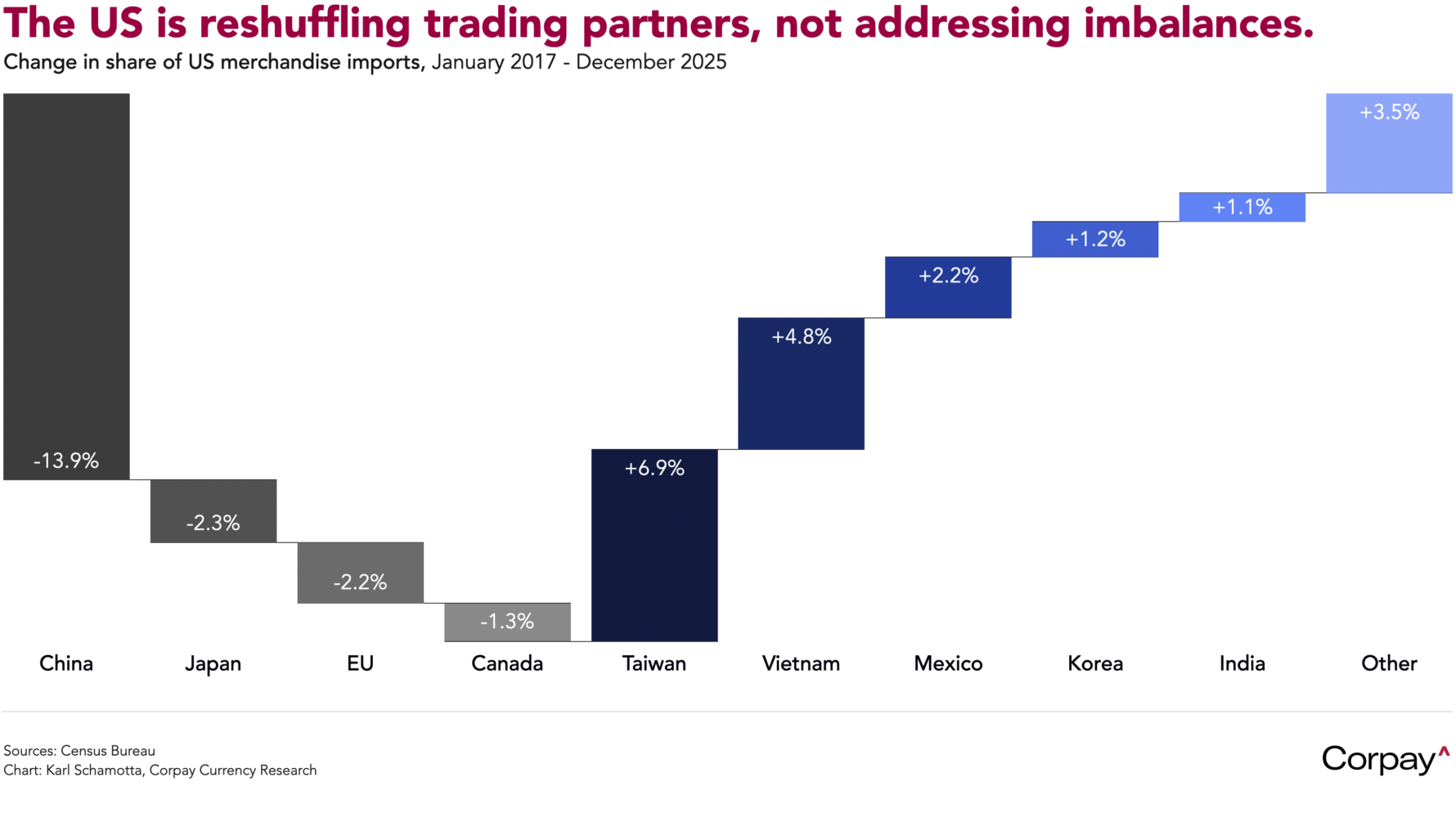 But the ruling is unlikely to alter the deeper capital flow calculus underpinning currency markets. After nearly a decade spent loudly implementing protectionist policies, the US has not reduced its external deficits so much as it has reshuffled them geographically, confirming what orthodox economic theory would suggest: that a meaningful adjustment in trade imbalances cannot occur without a shift in domestic spending and investment patterns. Fixing this would entail running smaller fiscal deficits, tax reforms that favour retained earnings and saving over debt-fuelled consumption, fewer incentives for foreign capital to flow into US financial assets and property, and industrial policies that expand tradeable-sector capacity without inflating asset prices—an agenda that currently enjoys limited support and is likely to face stiff resistance from entrenched interests. For now, the US will continue borrowing from abroad and consuming more than it produces.