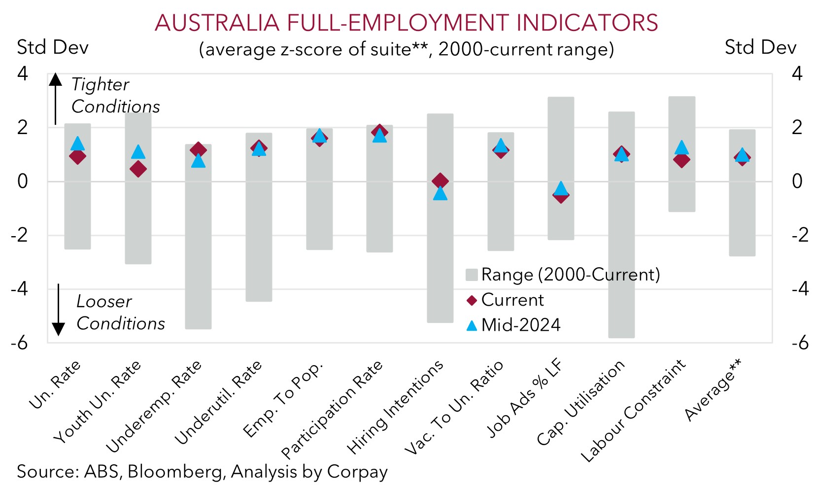 In terms of the Australian data there was a solid rebound in employment conditions. Employment rose ~42,200 in October, driven by a hefty increase in full-time jobs (+55,300). This, and a steady participation rate, saw the unemployment rate slip back to 4.3%. The data confirms suspicions the lift in the unemployment rate last month was in part due to the volatility in the series and that markets were too quick to jump at shadows. In our opinion, the combination of sticky Australian core inflation, a resilient jobs market, and signs of improvement in domestic growth point to an extended period on hold by the RBA. Moreover, the longer the RBA stands still the greater the chance the next (eventual) move in policy ends up being a rate hike. Trying to preserve the gains in the labour market and support growth was an active decision by the RBA. That is why the RBA didn’t go as high as their peers during the tightening phase, but it also means the RBA isn’t able to be as aggressive during the easing cycle.